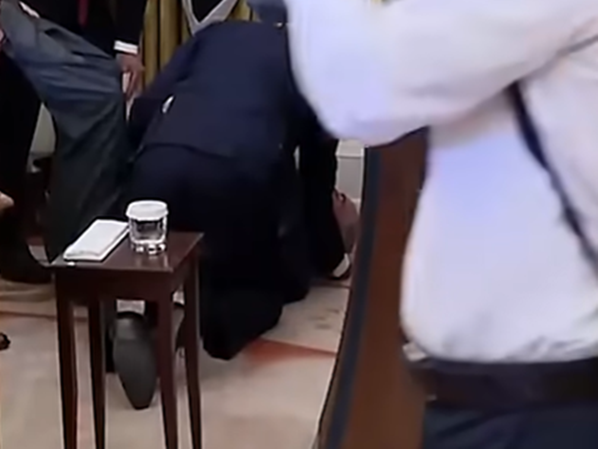 Доналд Тръмп стана от бюрото си и се обърна към мъжа, лежащ на пода, преди прякото предаване да бъде прекъснато.