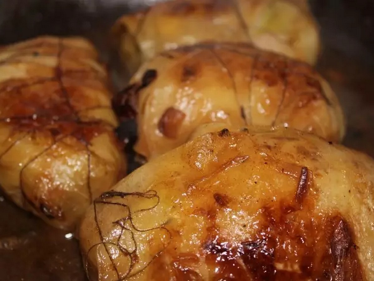 За да направите зелевите сарми невероятно вкусни, трябва леко да ги запържите преди задушаване. За да направите това, трябва да загреете тигана до средни температури и да поставите приготвените сармички върху него.