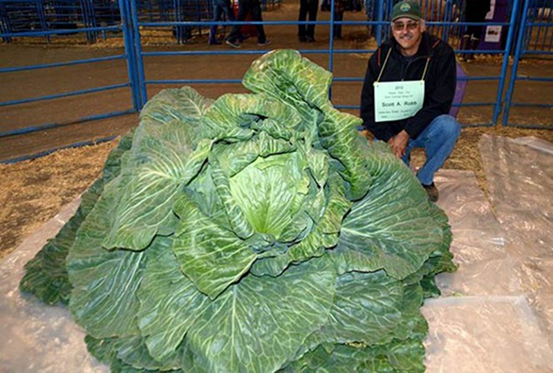 Конкретният гигант е с радиус 40 см и е възможно да тежи над 12 кг. Точно толкова е рекордът за България, поставен при този зеленчук със сочни и плътни зелени листа.