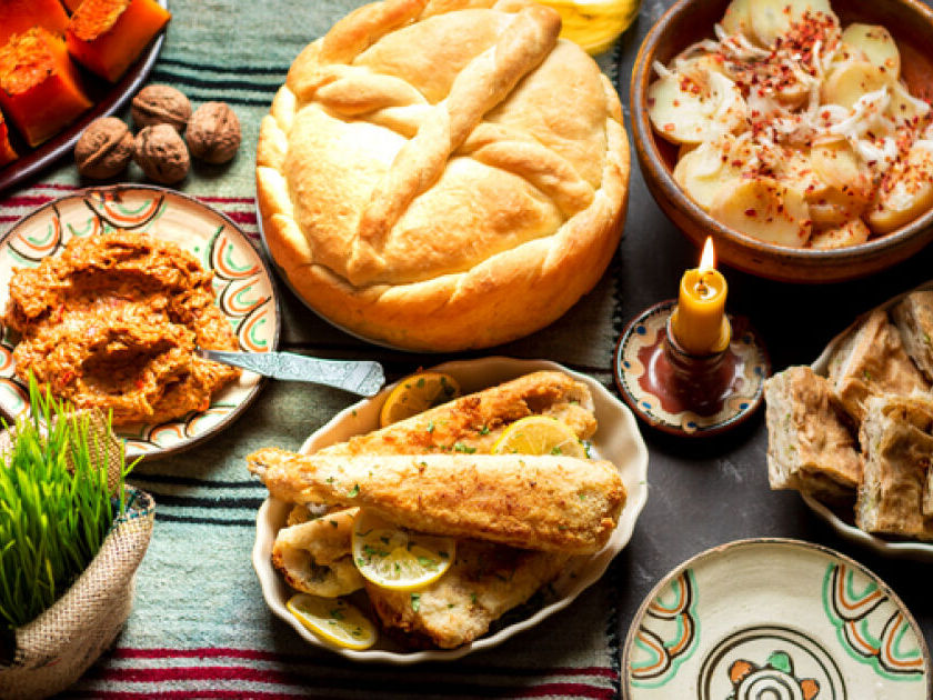 Леща чорба с дафинов лист, варен боб с чубрица, зеле с ориз, гювеч с картофи и патладжан, пълнени чушки с булгур.