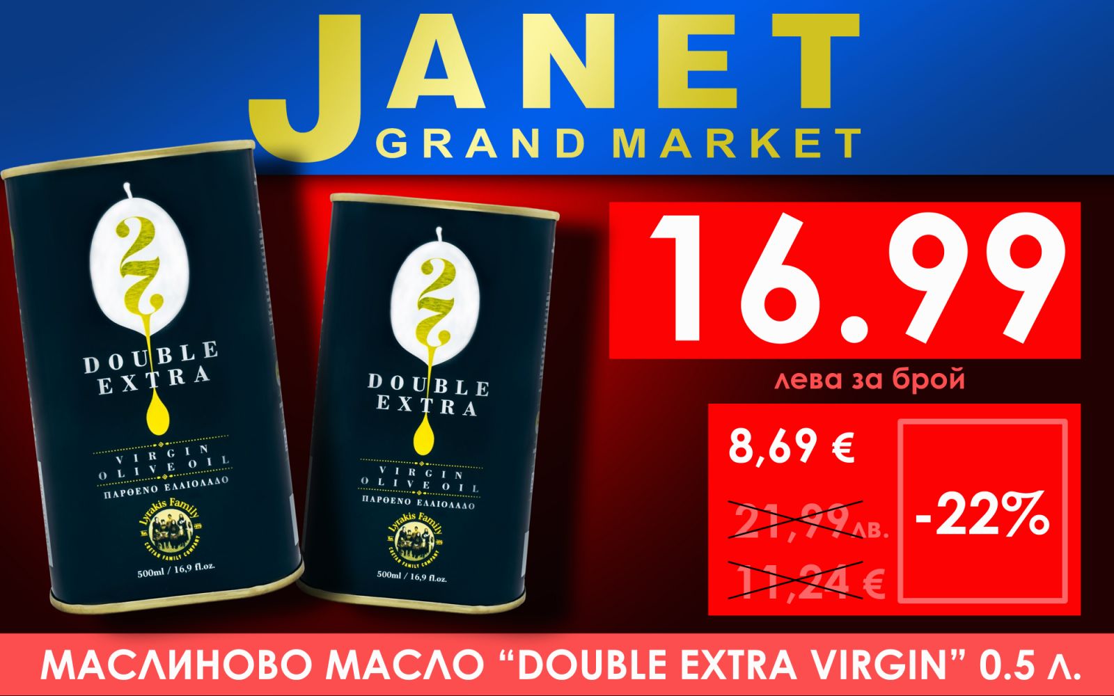 Едно от най-големите предимства за клиентите на Janet Grand Market е, че веригата работи директно с производителите. Благодарение на това, маслиновите масла на Lyrakis Family и Terra Zakros се предлагат на изключително достъпни цени, без компромис в качеството.