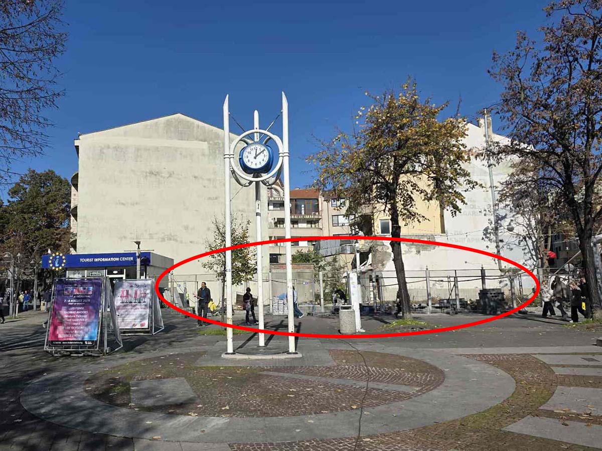 В самото сърце на Бургас, където се срещат главната ул. „Александровска” и морският бул. „Алеко Богориди”, току под кметския кабинет, тече усилен ремонт. Съборени са оградите с постери, заграждащи неугледното петно земя в най-апетитната част на града и работници сякаш подготвят терена за строеж. Там, преди повече от 10 години, бе монтиран временен павилион, в който всеки турист може да получи информация какво се случва в Бургас и региона. Всъщност на мястото няма планове да се строи, няма да изникне набързо поредният частен билдинг със смесена функция, където апартаментите да се продават за над 4000 евро на квадрат. Това установи Флагман веднага щом се вдигна шум за разчистването на терена.