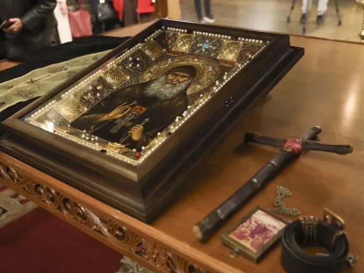 Икона с мощи на св. Гавриил Ургебадзе и негови вещи изложени за поклонение в "Св. Неделя“ в София