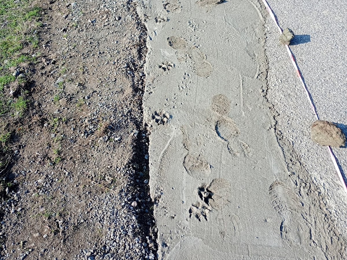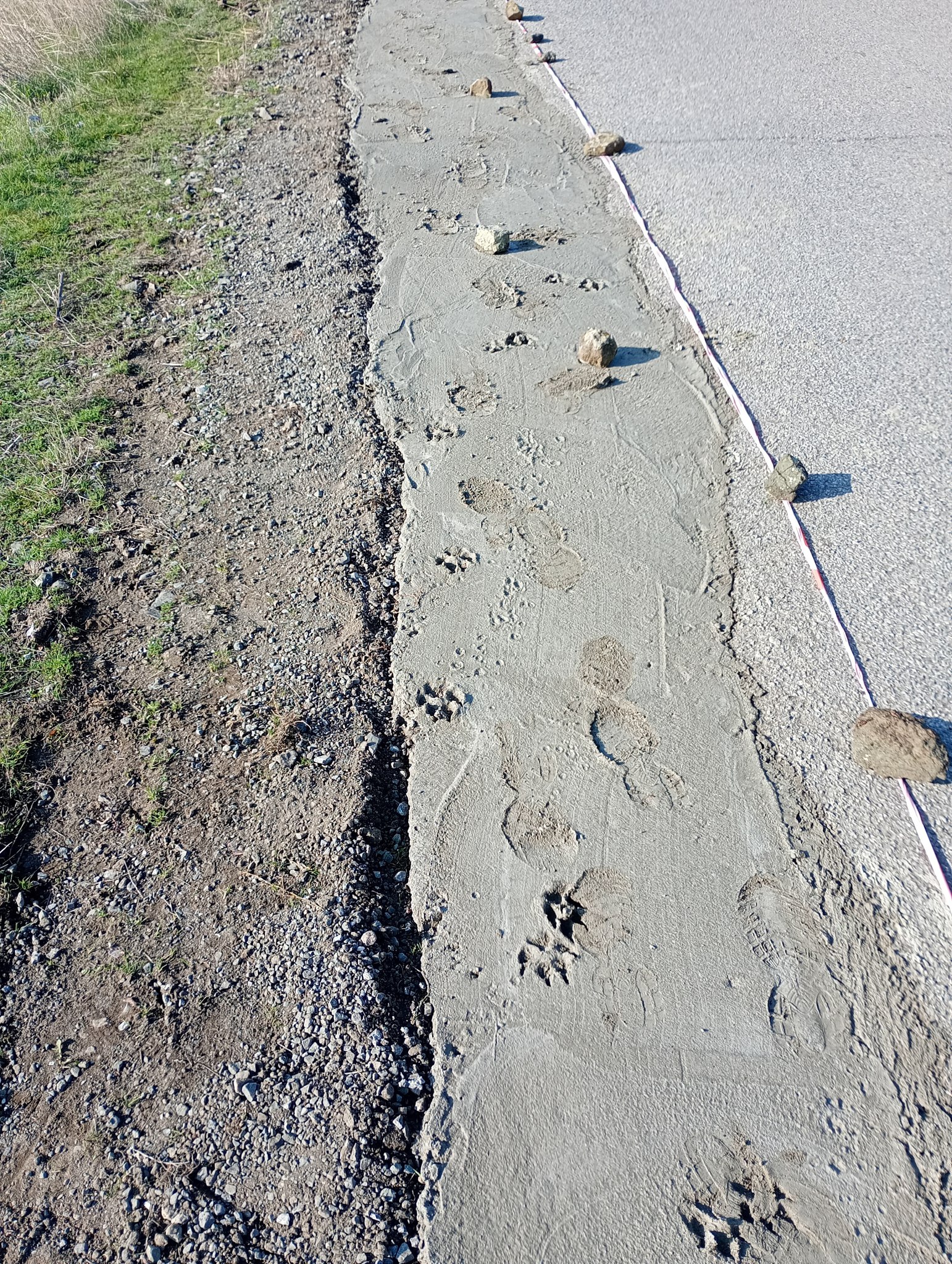 „Снощи, петък - 14.11.2025 г., отново вандализъм от жител на село Лясково или община Айтос към труда на хората, които положиха бетон на компрометирания банкет по пътя гр. Айтос -с. Лясково. Макар,че имаше съобщение и маркировка, някой нарочно е минал с обувки по прясно положения бетон“, пише читателят в сигнала.