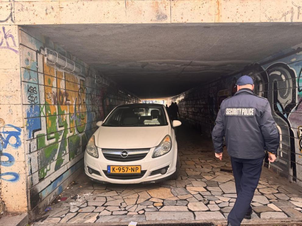Необичаен инцидент привлече вниманието на жители и минувачи във Варна, след като автомобил с чужд регистрационен номер беше открит паркиран в подлеза зад спирка „Осми декември“.