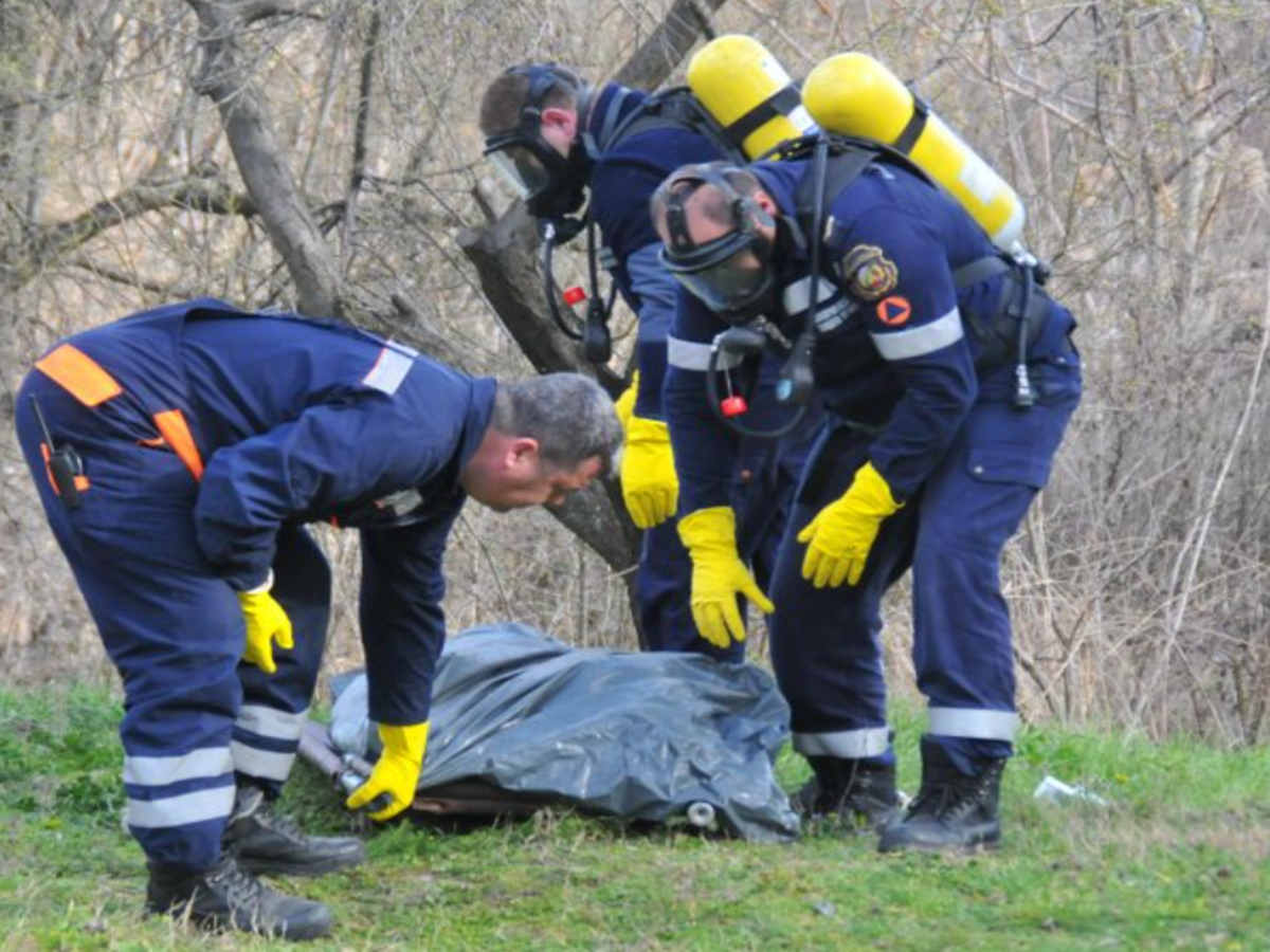 Установено е, че трупът е на местен жител на 69 г. Местопроизшествието е посетено също от дежурна оперативна група на полицията и съдебен лекар.