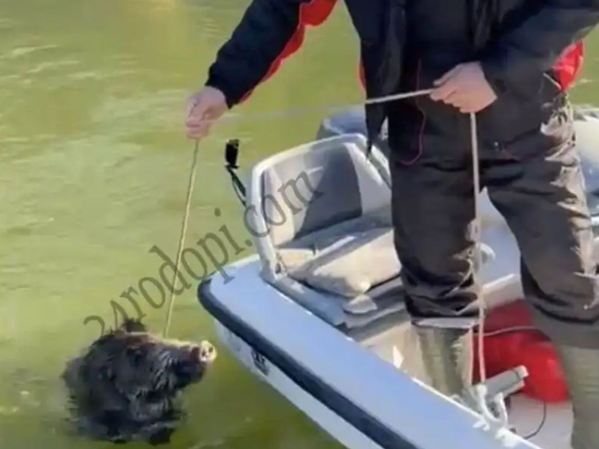 Извадил прасето с лодка от водоема и животното било пуснато обратно на свобода