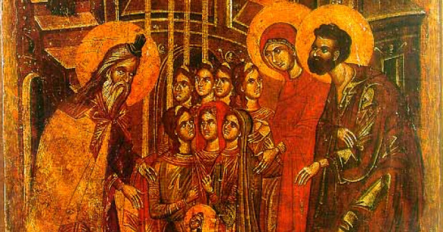 Когато дошъл моментът девиците да напуснат храма и да се омъжат, Мария споделила желанието си да остане посветена на Бога. По внушение на Светия Дух свещениците я сгодили за праведния Йосиф – възрастен роднина, който поел грижата да пази и почита нейния обет.