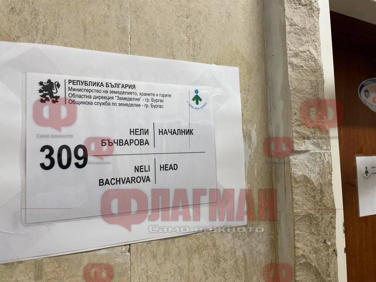 В същото време друг наш репортер е във Водната палата на ул. "Фердинандова" №5, където на 3-ия етаж е устроена Общинската служба по земеделие на Община Бургас, с началник Нели Бъчварова. Заварихме вътре нейните подчинени служителки Диана Янева и Петя Стойчева. Те ни увериха, че Бъчварова е на теренна проверка в село Равнец, те са на работните си места и нямало за какво да се безпокоят.