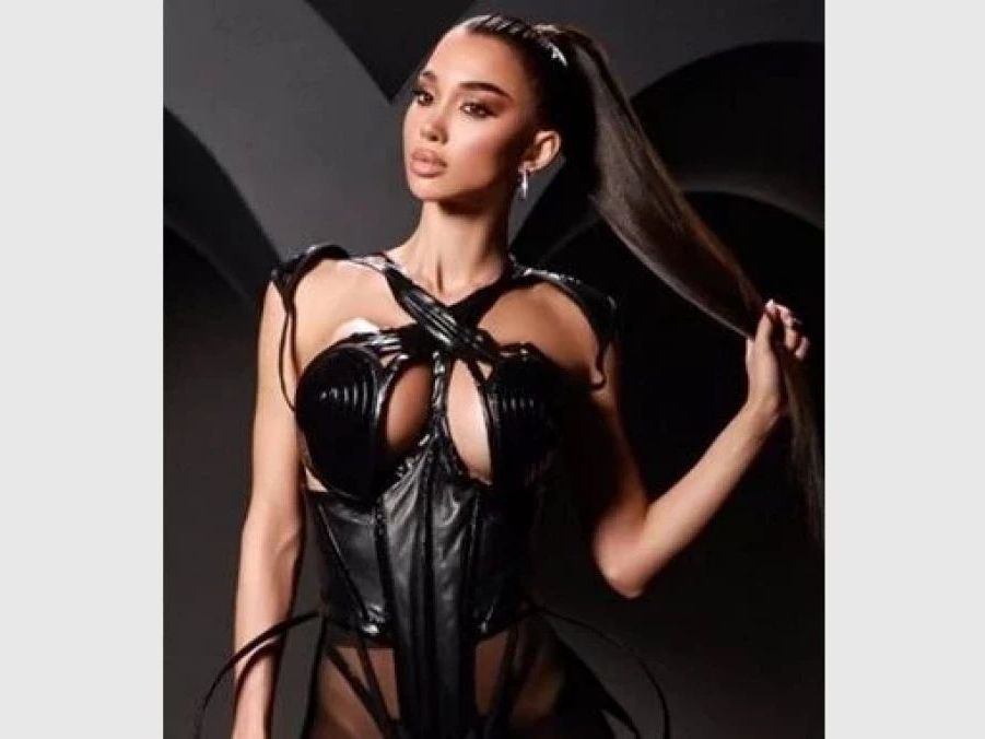 Облечена в кожено боди, дълги ботуши и жартиери, сексбомбата е като истинска господарка, готова да раздава правосъдие и да покори сцената със самочувствие и бурна енергия.