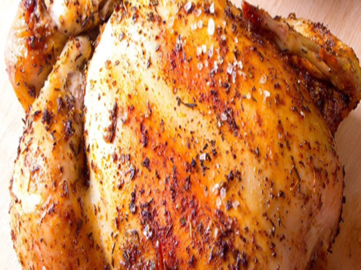 В подходяща тава се изсипва солта и отгоре се поставя цялото пиле. Пече се 30 мин.