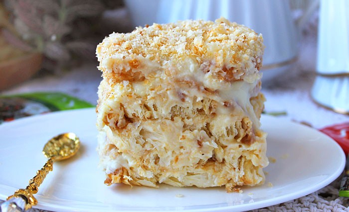 Тогава този вариант на Наполеон, разпространен в славянските страни, ще ви очарова – приготвя се с популярните у нас маслени бисквити „Сълзица“ (или подобни) и няма да ви отнеме повече от половин час.