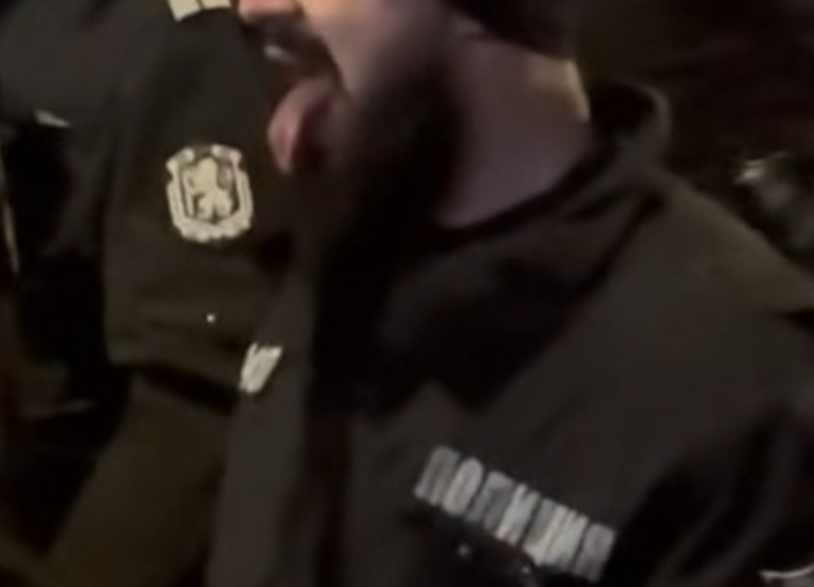 На друго фото пък се вижда как полицай се плези към протестиращи. Ако не става въпрос за генериран с изкуствен интелект образ и тази картина не изглежда обичайна. Все пак последното нещо, което се очаква от представител на реда е да наподобява навиците на гущер.