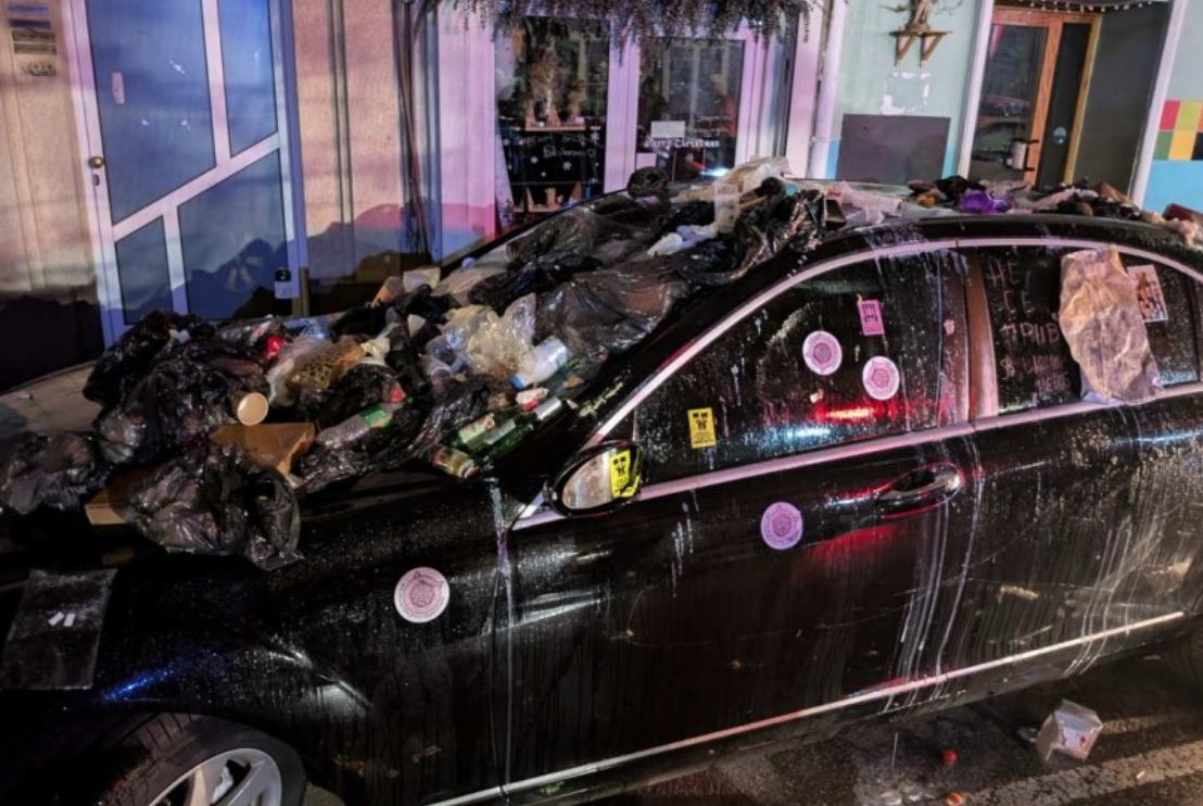 Гневни протестиращи засипаха държавен автомобил с всевъзможни предмети