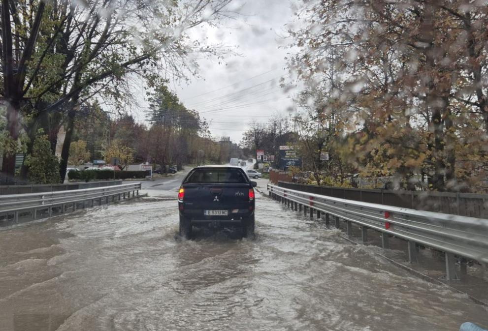 Голямо количество вода има на автомагистрала „Струма“ при село Ново Делчево и на главен път Е-79 в района на кв. „Спартак“ в Сандански. На място са екипи на Пътната полиция, които сигнализират на шофьорите да преминават с повишено внимание. Няма данни за пострадали хора.