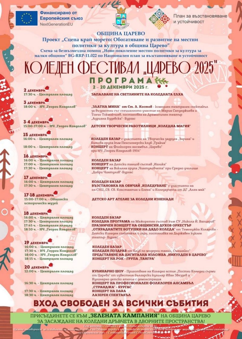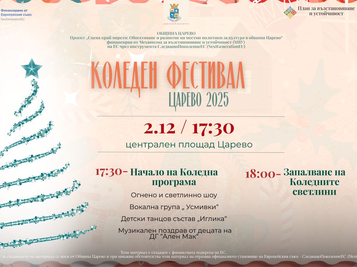 Пълната програма за Коледният фестивал в Царево 2025, може да видите тук: