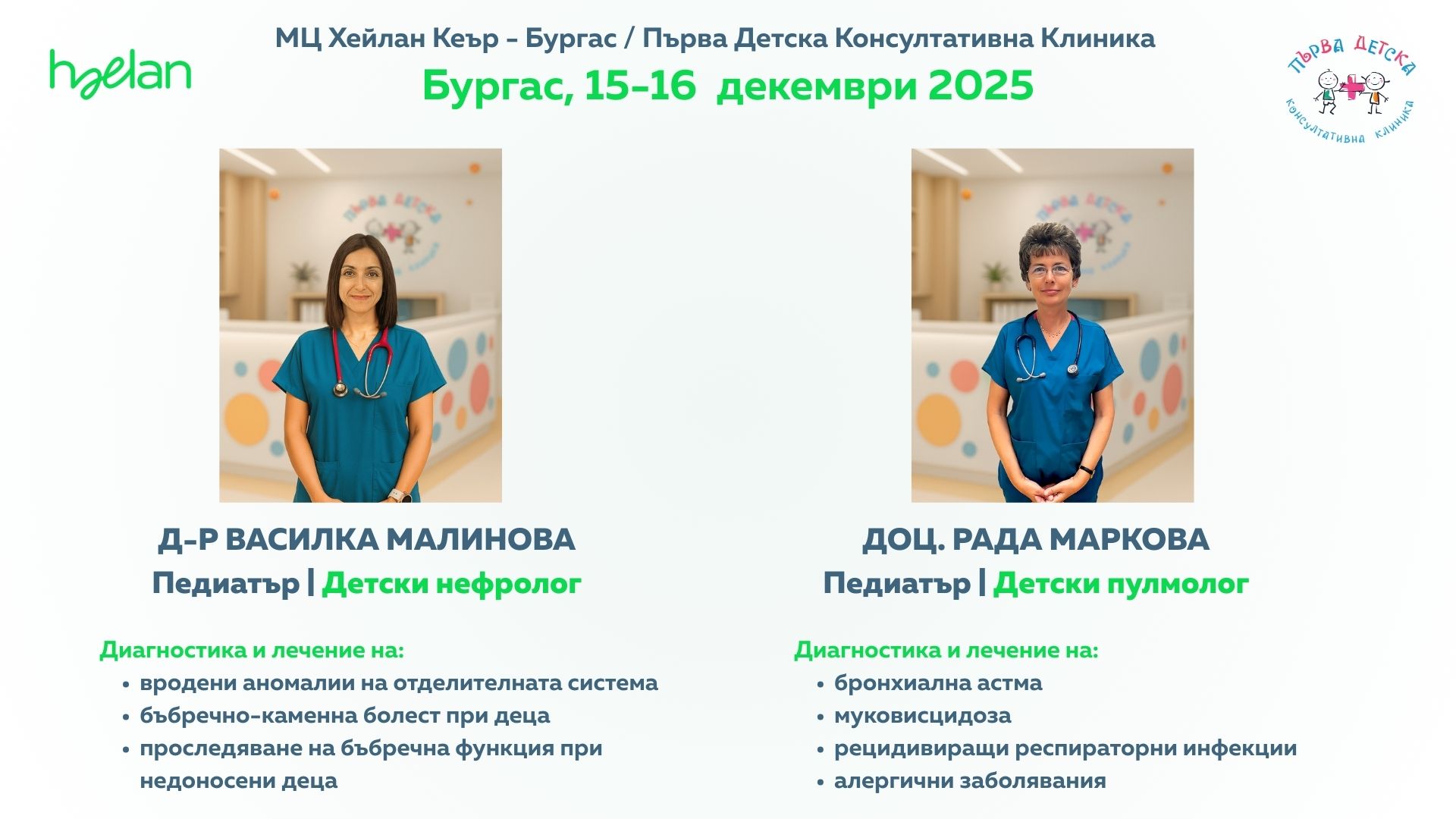 След силния интерес към първото гостуване през октомври, доц. д-р Рада Маркова от 1ДКК – София отново ще консултира деца в Бургас на 15–16 декември, като този път към нея се присъединява и д-р Василка Малинова.