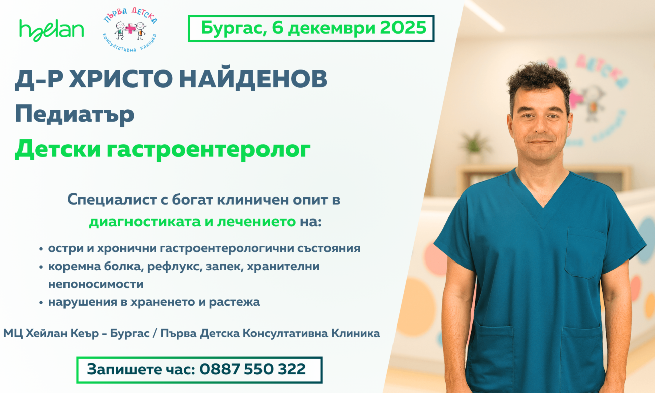 Д-р Христо Найденов – педиатър и детски гастроентеролог ще преглежда деца в Бургас на 06 декември 2025.