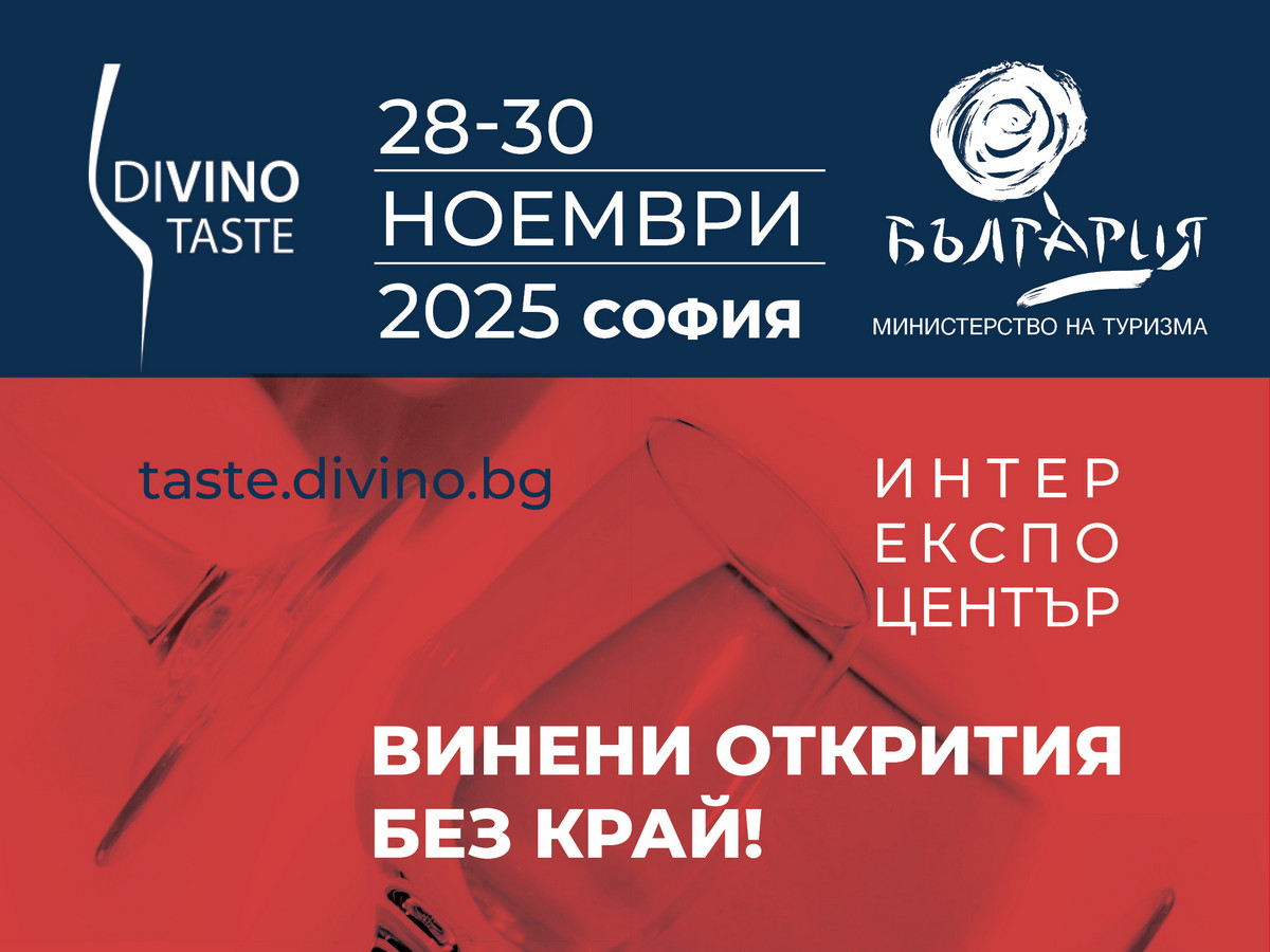 На 28 ноември в Интер Експо Център София, с подкрепата на Министерство на туризма, ще бъде открито 14-тото издание на DiVino.Taste – едно от водещите събития за българско вино и винен туризъм. Форумът традиционно събира десетки изби, експерти, сомелиери, представители на туристическия сектор и гости от страната и чужбина, превръщайки се в ключова платформа за развитие на винено-кулинарните маршрути в България.
