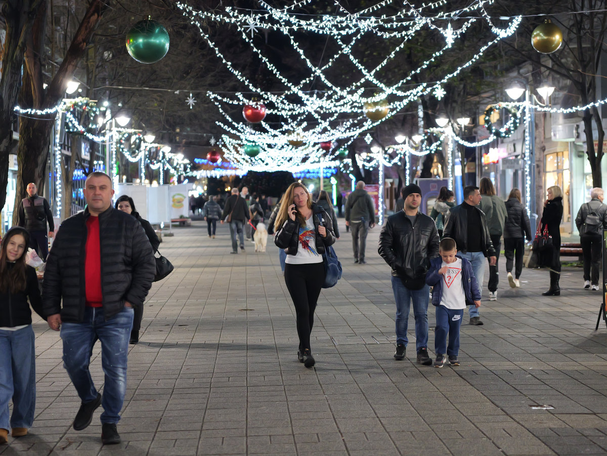 Главната в Бургас блести като от коледна приказка, а хората вече се потапят в празничната атмосфера