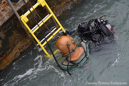 За да може той да потъне, на гърдите и на гърба му се поставят оловни тежести. Всяка от тях тежи по 16 кг. Накрая гмуркачът обува обувки, тежащи около двадесет килограма. Те предпазват краката му и му осигуряват вертикално положение докато е на дъното. Този път всеки от участниците ще получи сетрификат, удостоверяващ, че се е включил в атрактивната демонстрация.