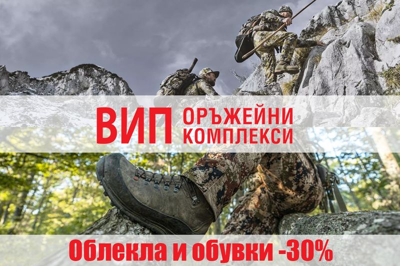 Супер намаления на облекла и обувки до -30%, които да Ви държат на сухо и топло през ловния сезон. В намаленията влизат облекла на фирмите Blaser, Deerhunter, Chevalier, Beretta, 5.11, Crispi, Aigle, Chiruca и други.