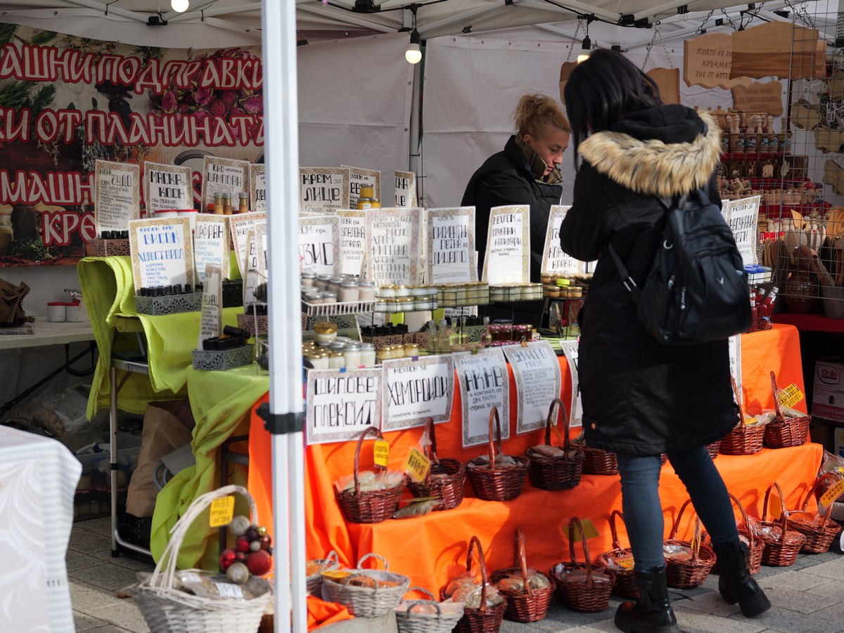 Цветните щандове вече будят интереса на гражданите. Тук може да видите и да си харесате за коледни подаръци и традиционни български сувенири, ръчно изработени илачи за здраве и красота, както и пивки напитки, и фермерски мезета.