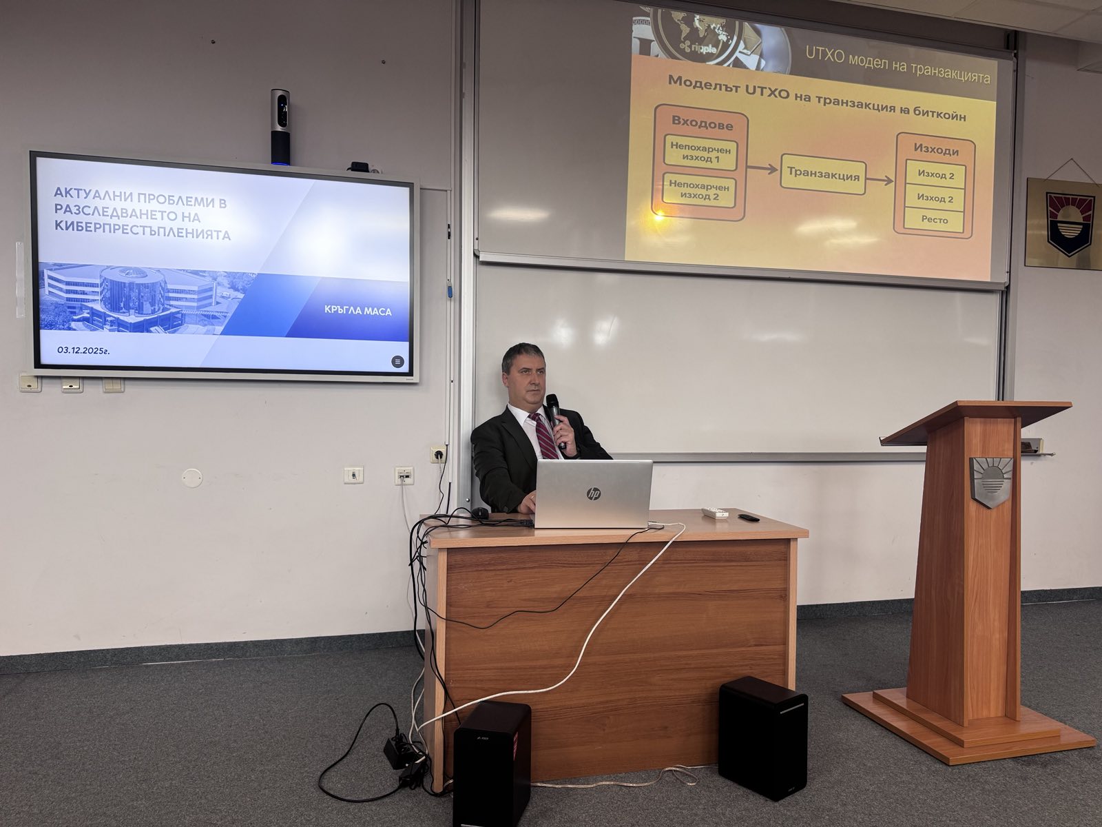 В университетската аудитория акцент бе поставен както върху теоретичните постановки, така и върху практическите казуси при разследване на компютърната престъпност. Модератори на събитието бяха прокурор Йовита Григорова – зам.- административен ръководител на Апелативна прокуратура-Бургас и доц. д-р Христо Павлов – програмен координатор в ЦЮН при БСУ. Дискусията започна с разискване на съвременните тенденции, проблеми и решения при разследване на престъпления, свързани с транзакции и криптоактиви.