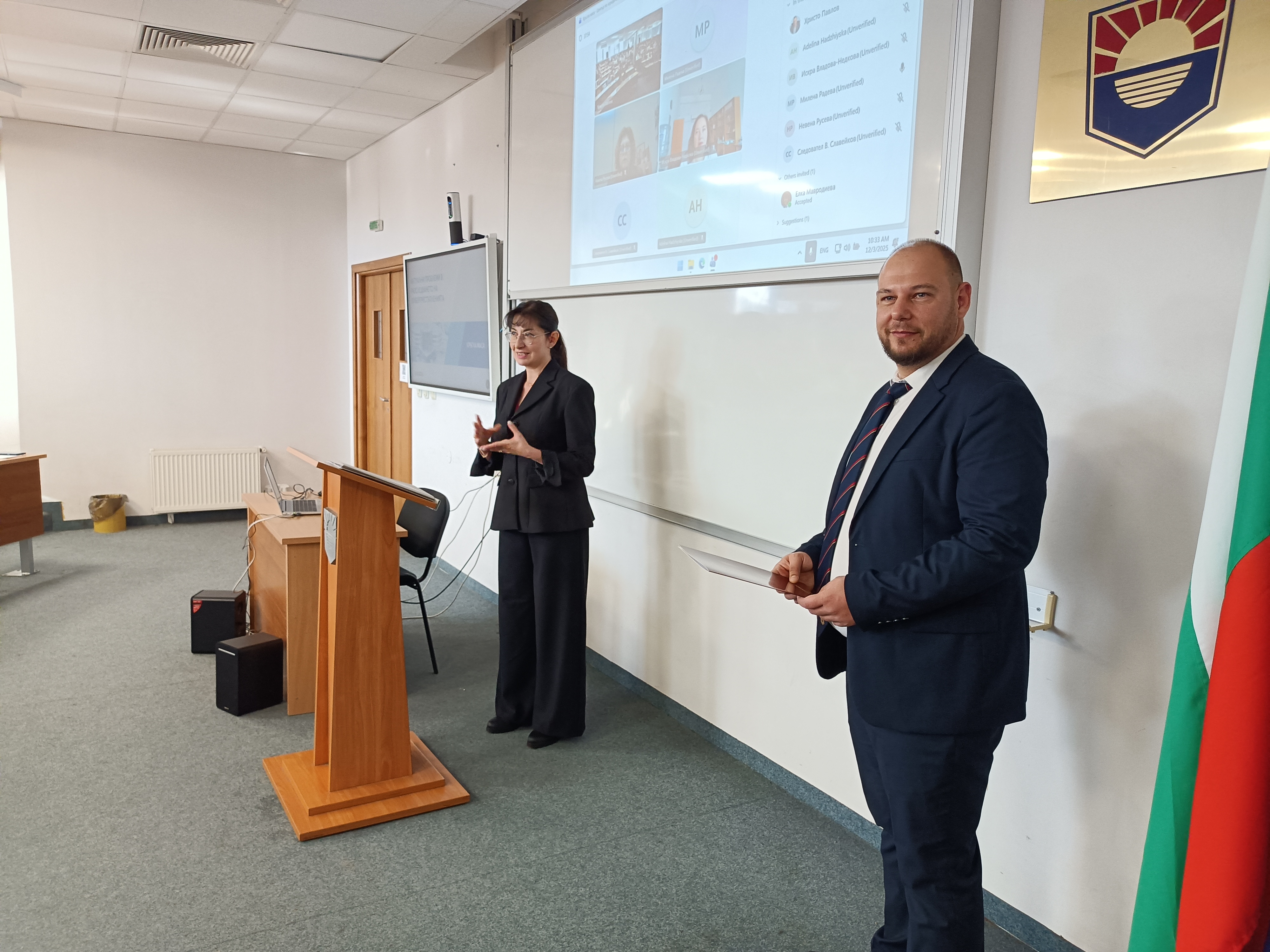 Дискусията продължи и с темите „Компютърна криминалистика и нейното приложение при разследването на престъпления“ и „Действия по претърсване и изземване при компютърни престъпления“, представени от доц. д-р Веселина Жечева – преподавател в Център по информатика и технически науки в БСУ и гл. ас. д-р Аделина Хаджийска – преподавател в юридическия факултет на ВСУ „Черноризец Храбър“. Официални гости на събитието бяха съдия Пламен Синков – председател на Апелативен съд-Бургас, проф. д-р Милен Балтов – ректор на БСУ, проф. д.н. Мария Алексиева –зам.-ректор на БСУ и Дарина Димитрова – пом.- ректор на БСУ, прокурор Веселин Гангалов – административен ръководител на Окръжна прокуратура-Сливен, прокурор Дойчин Дойчев – и.ф. административен ръководител на Окръжна прокуратура-Ямбол, както и административните ръководители на Районните прокуратури в Бургас, Сливен и Ямбол – прокурорите Мария Маркова, Катя Колева и Мина Грънчарова.