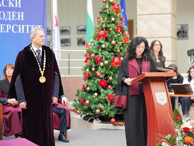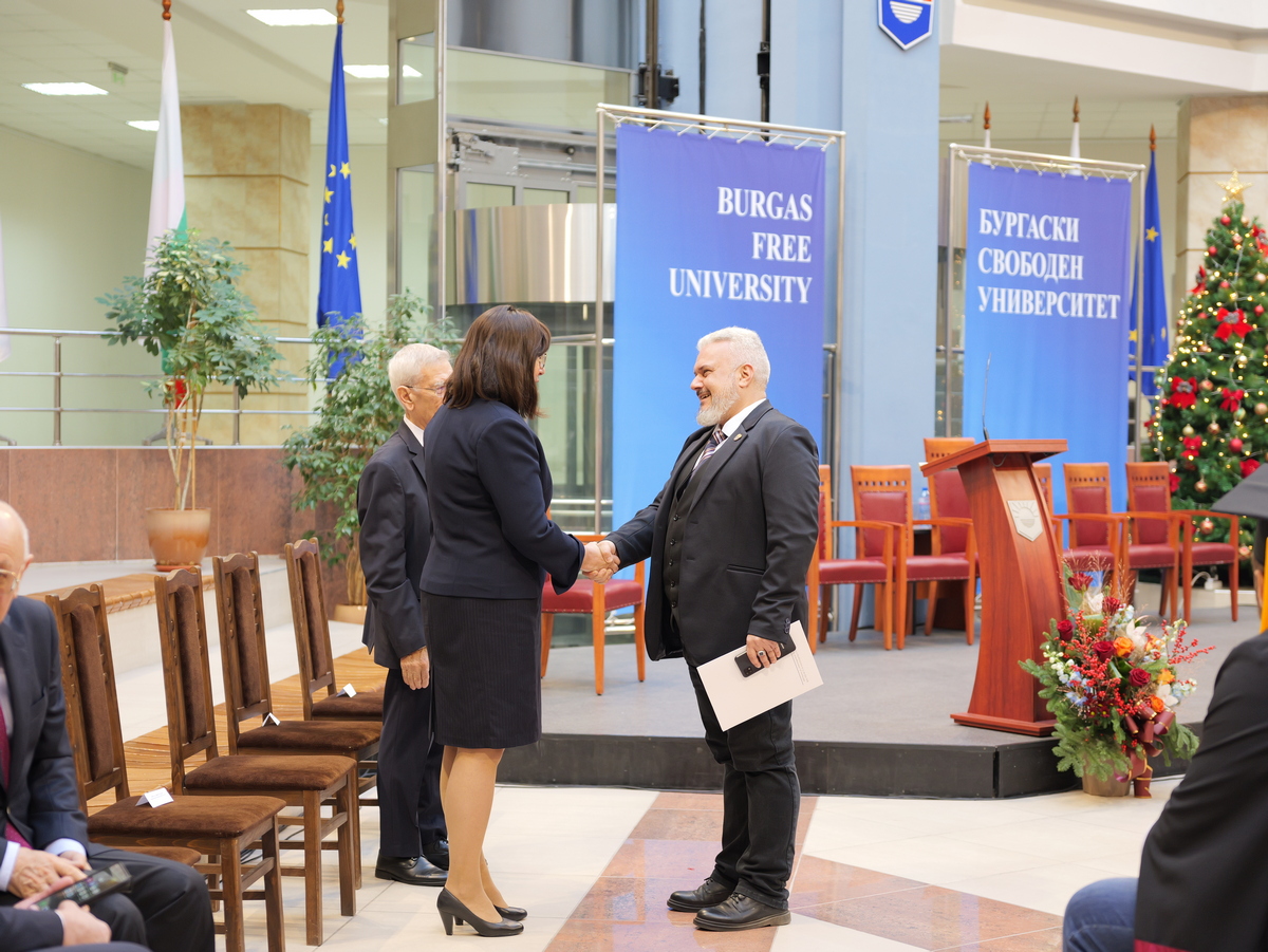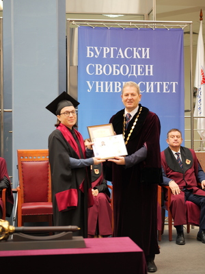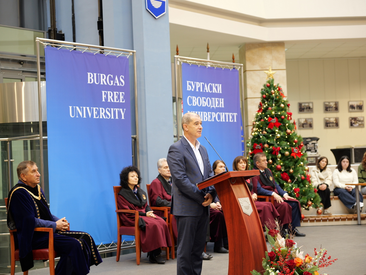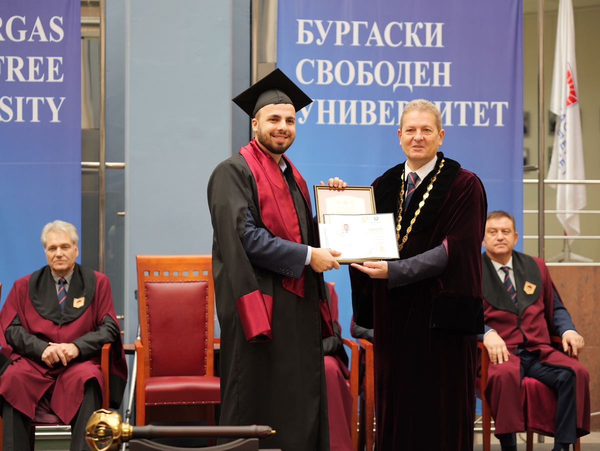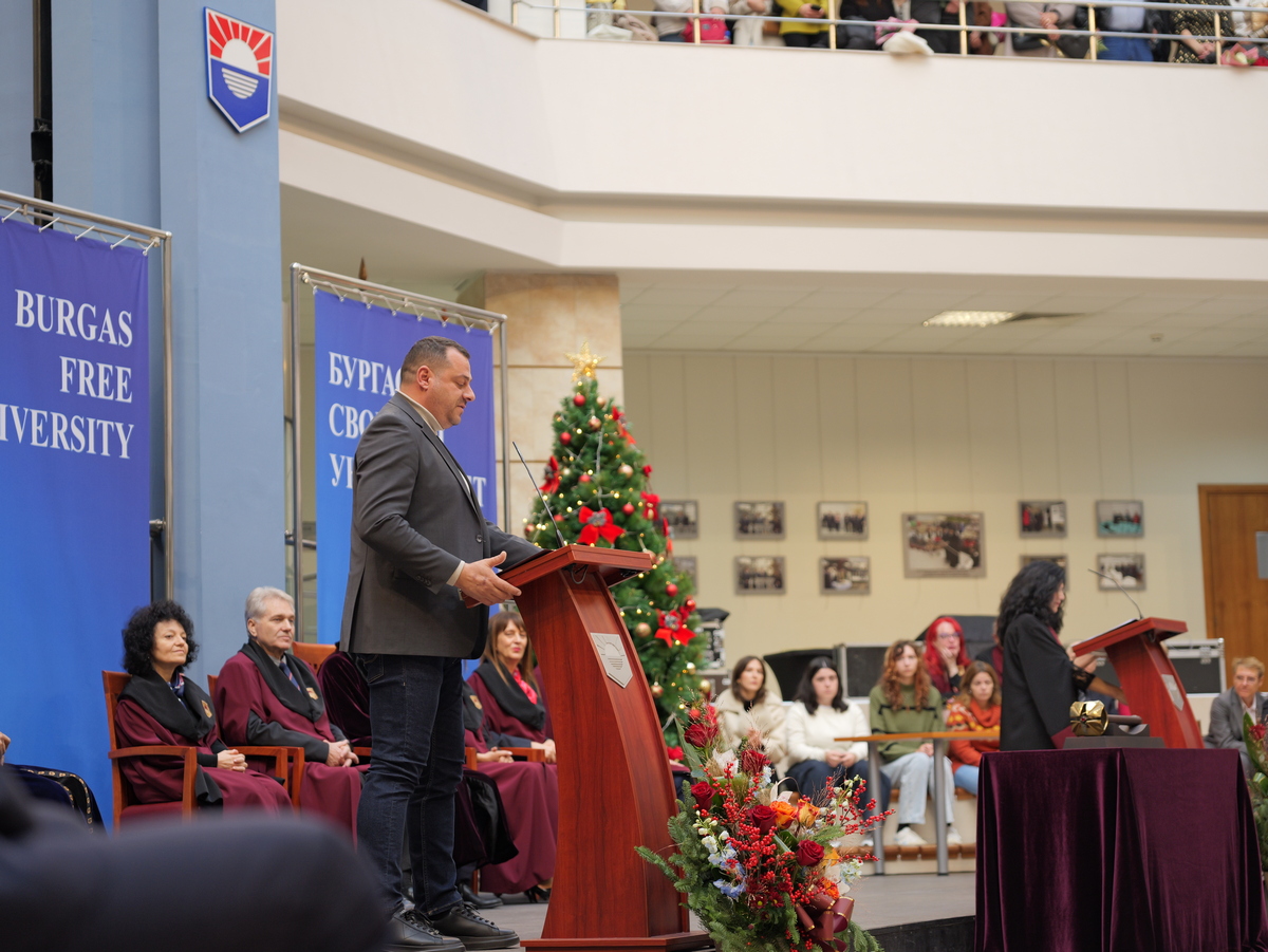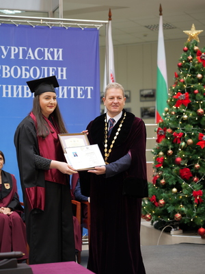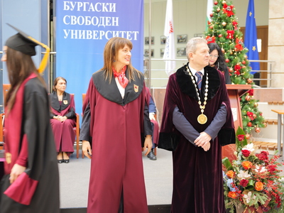 Ректорът на Бургаския свободен университет проф. д-р Милен Балтов поздрави студентите за успешния завършек на тяхното висше образование.