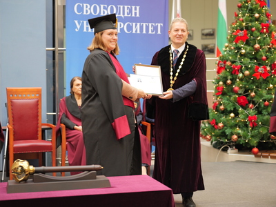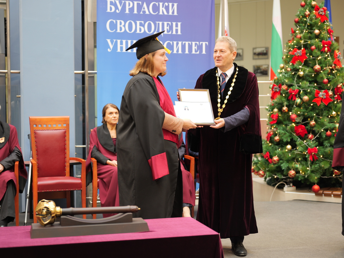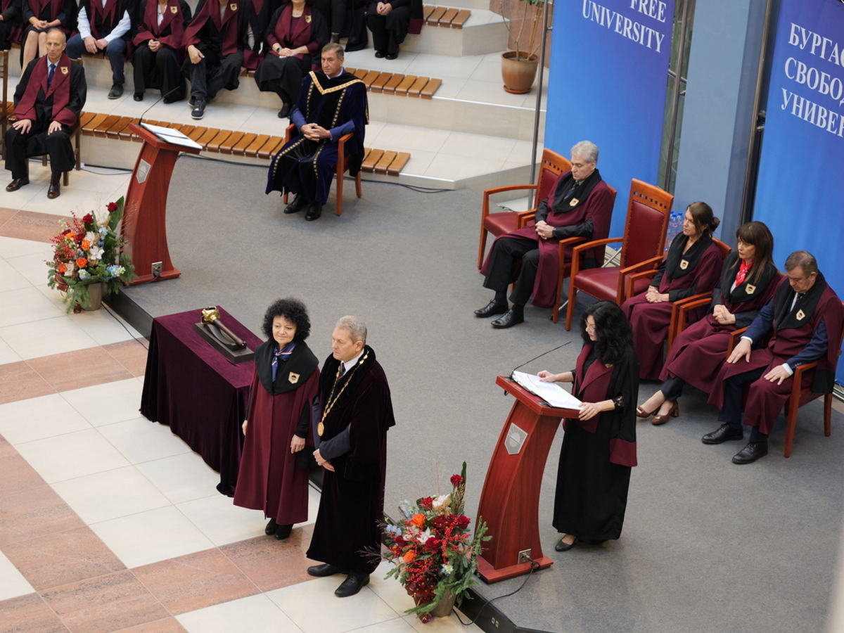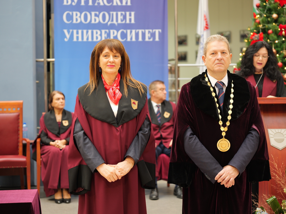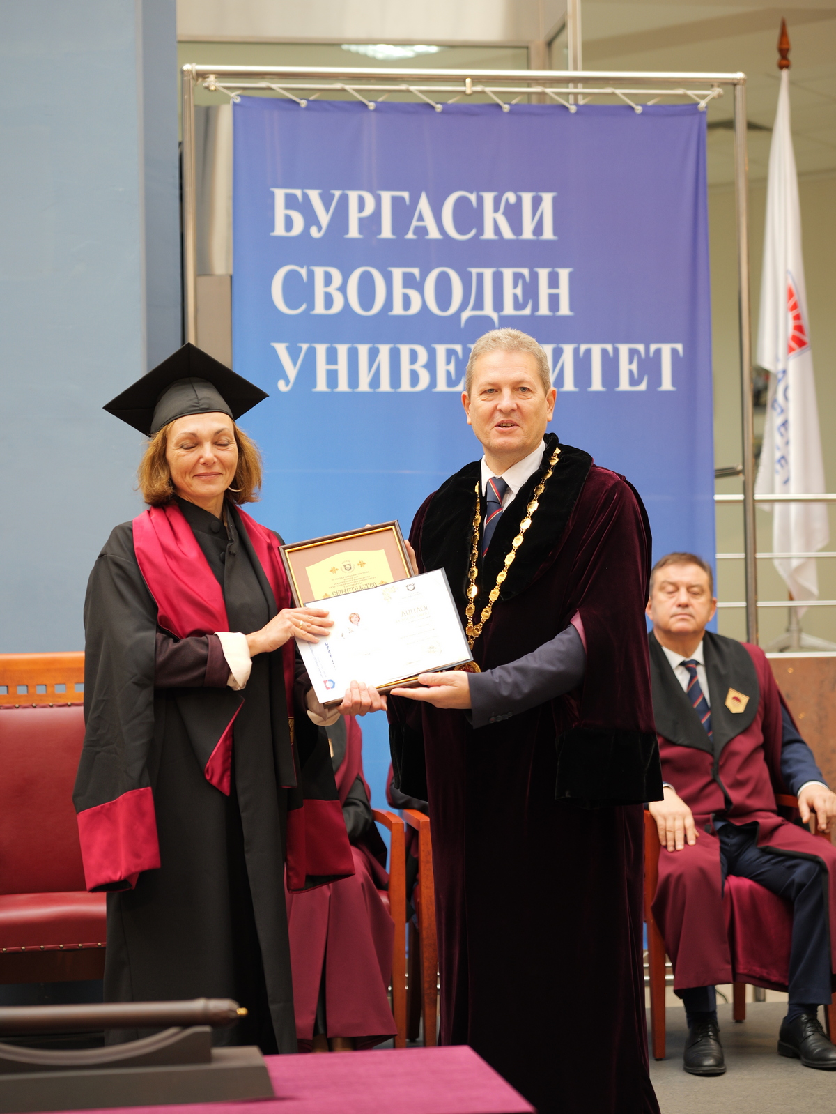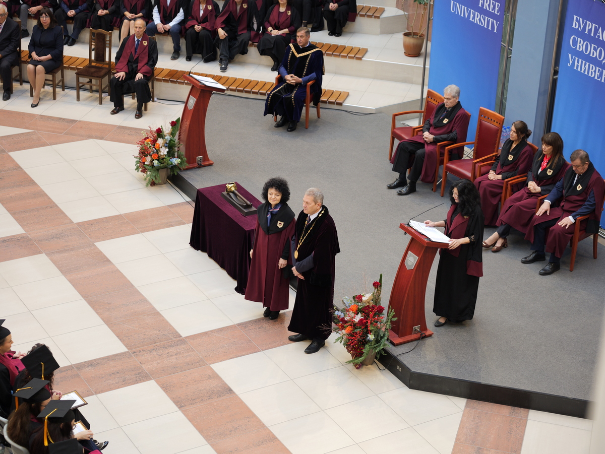 Ректорът на Бургаския свободен университет проф. д-р Милен Балтов поздрави студентите за успешния завършек на тяхното висше образование.
