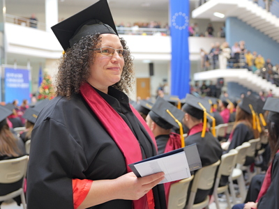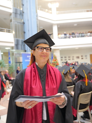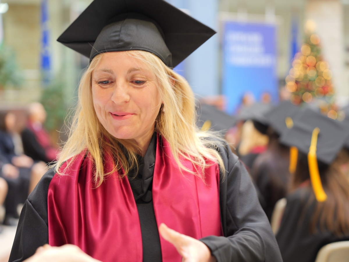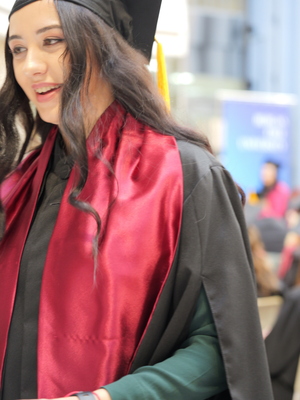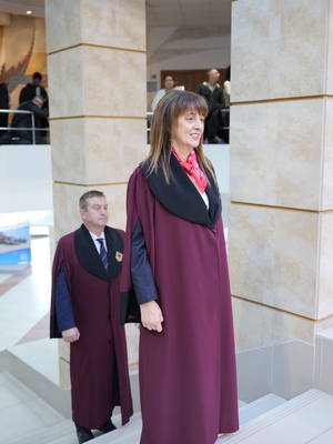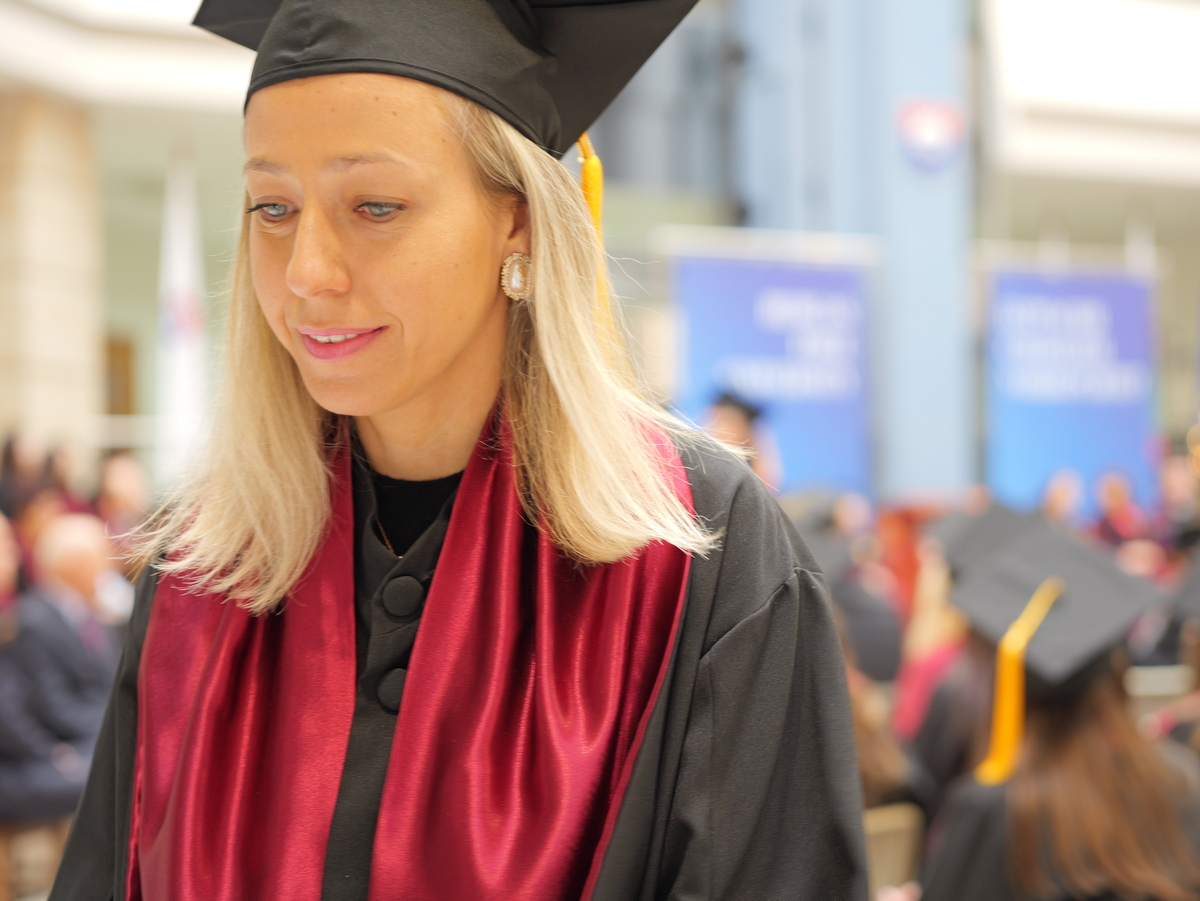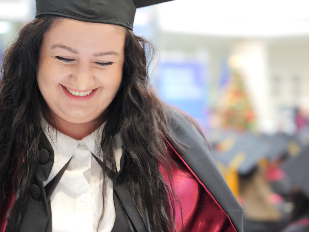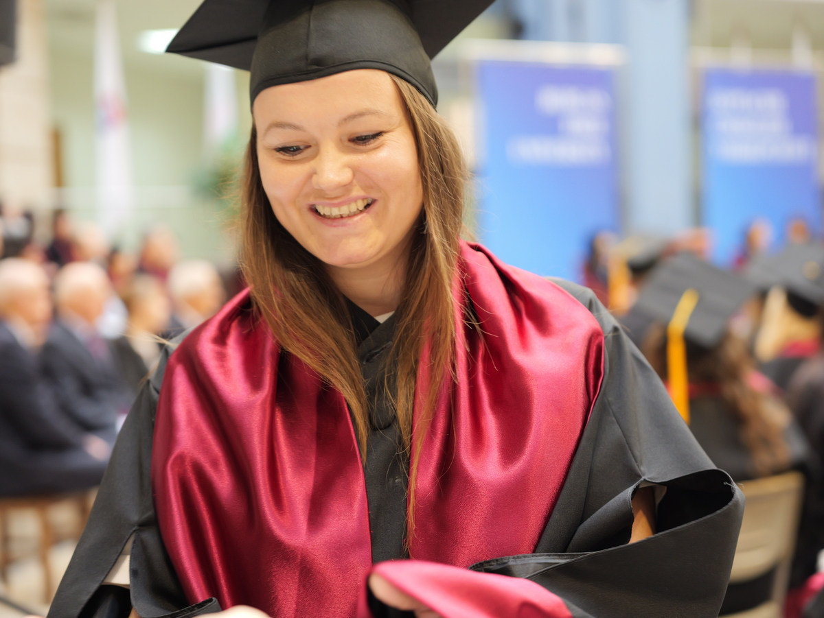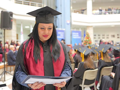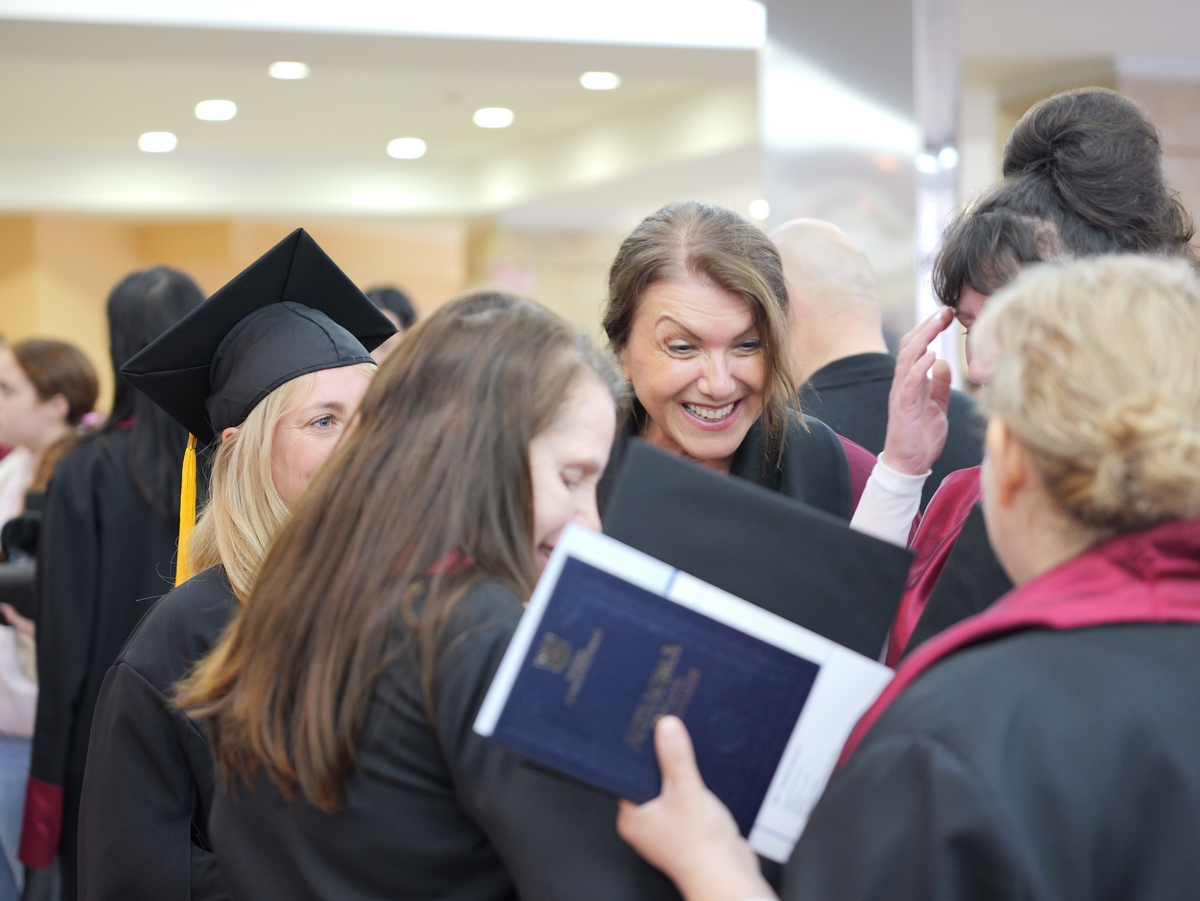 От името на абсолвентите приветствие поднесе Аля Казанджиева, магистър от специалност „Иновации и предприемачество в началното и предучилищното образование“ „Всеки от нас влиза в университета изпълнен с мечти и амбиции. Днес си тръгваме като личности, развили се чрез усилия, дисциплина, вдъхновение и непрекъснато учене. Пътят беше предизвикателен, но именно тези предизвикателства ни изградиха, както и подкрепата, насоките и отдадеността на нашите преподаватели, които стояха до нас през всяка стъпка от този път“ – каза в приветствието си Аля Казанджиева.