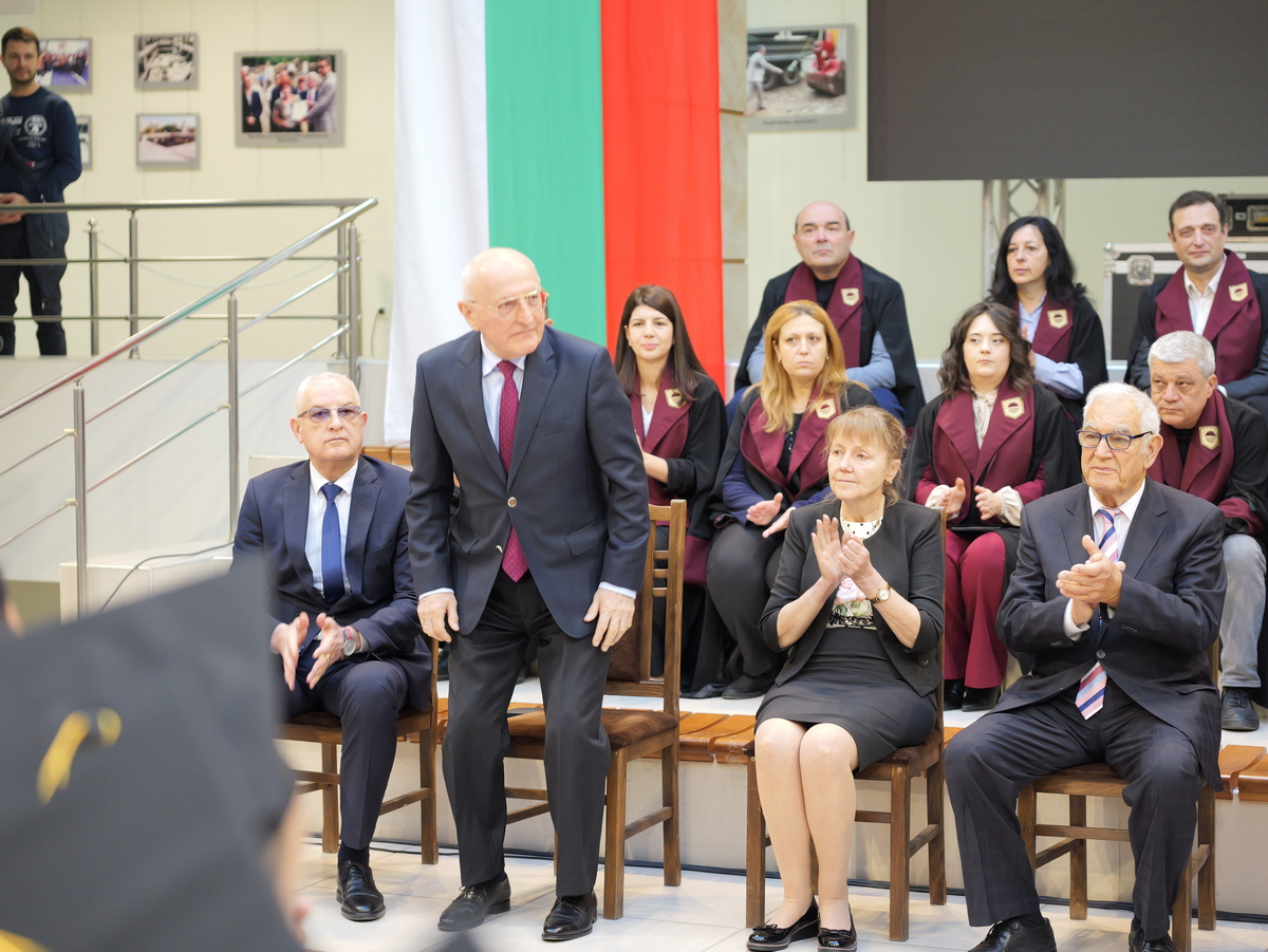 На церемонията присъстваха академичното настоятелство на БСУ начело с президента на ВУЗ-а проф. д-р Петко Чобанов, членовете на Настоятелството на БСУ: проф. д-р Васил Янков, почетен ректор на БСУ; проф. д.п..н. Галя Христозова, ректор на БСУ в периода 2014 - 2022 г., проф. д-р Димитър Юдов; проф. д-р Евелина Динева, Димитър Събков, Янко Янков.