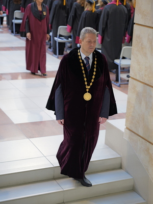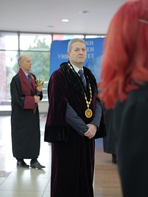 „В днешния празничен ден Вие, скъпи абсолвенти, се връщате към студентските дни в университета с преживяванията, колебанията и успехите си. Тук са и Вашите роднини, приятели, деца преминали с Вас годините на следване. Сигурен съм, че Вие им благодарите за помощта и разбирането. Благодарим им и ние! Благодарим и на стотиците работодатели, с които Вие поехте по пътя на следването, или с които започнахте част от Вашето обучение“ - каза в приветственото си слово към Випуск 2025 проф. д-р Милен Балтов, ректор на БСУ.
