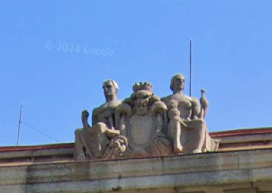 По фасадата на сградата могат да бъдат видяни много интересни скулптури и изображения, които са характерни за онзи период от историята, в който тя е строена и които имат символно значение, труднозабележимо от повечето хора.