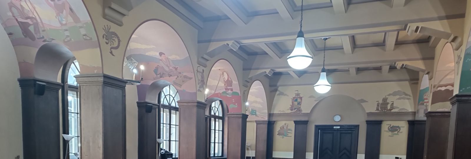 В интериора също има какво да се види. Художествената декорация на залите е извършена от професорите художници Никола маринов и Иван Пенков от София. В залата на партера ясно се виждат стенописи, на които се виждат всички зодиакални знаци. Подовете в сградата са покрити с паркет, а коридорите са покрити с мозайка - "рако“, внесена от италианската фирма "Раконит“, се разказва в книгата "Архитектурата на Бургас 1878-1940“ с автор арх. Атанас Сиркаров.