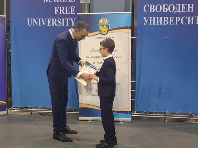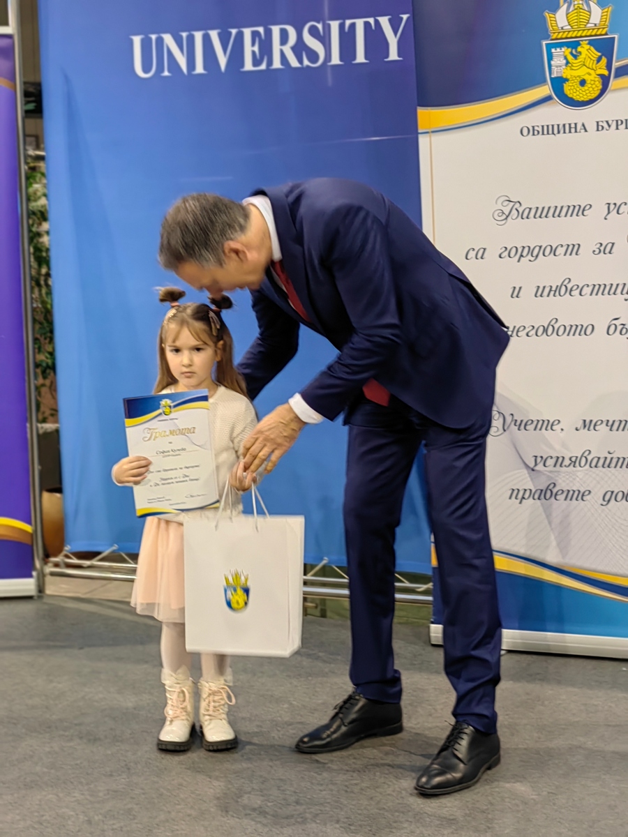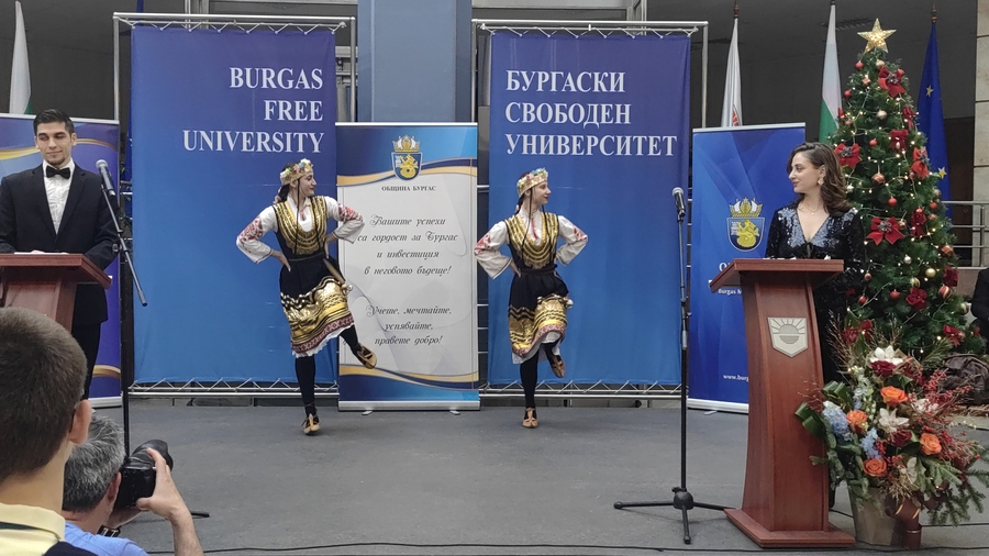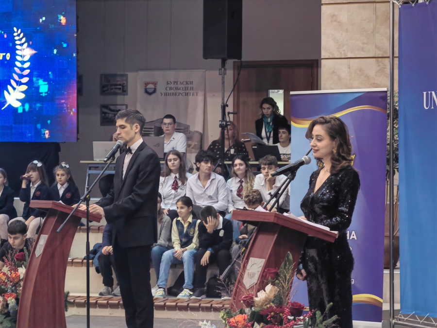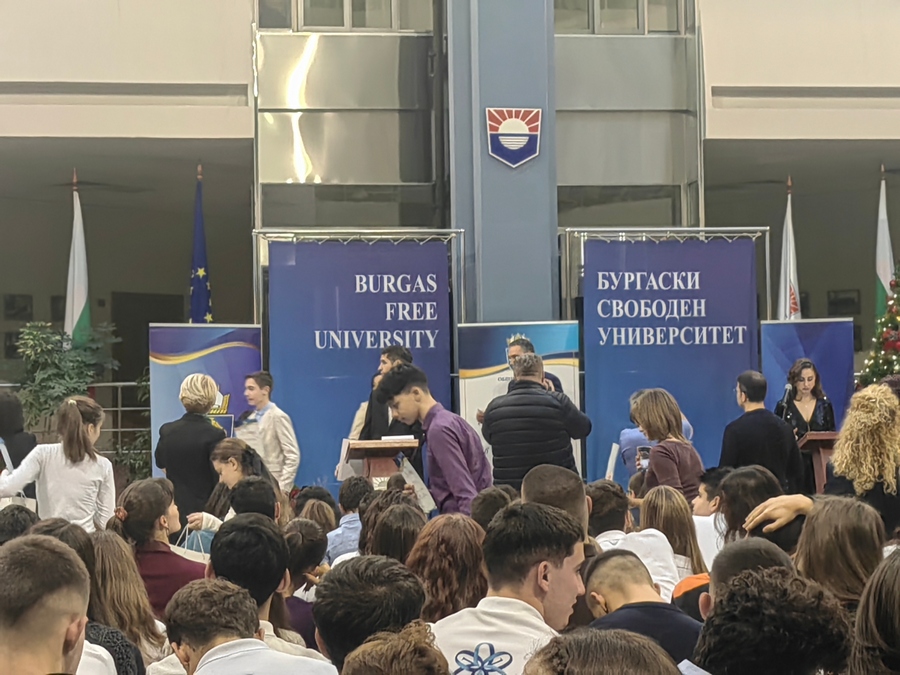 Атриумът на БСУ днес се превърна в море от ученици, студенти и деца с високи постижения в образованието, науката, изкуствата и спорта. Те получиха своите отличия в навечерието на Никулден пред погледите на родители, съученици, преподаватели и съграждани, лично от кмета на Бургас Димитър Николов.