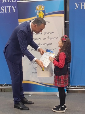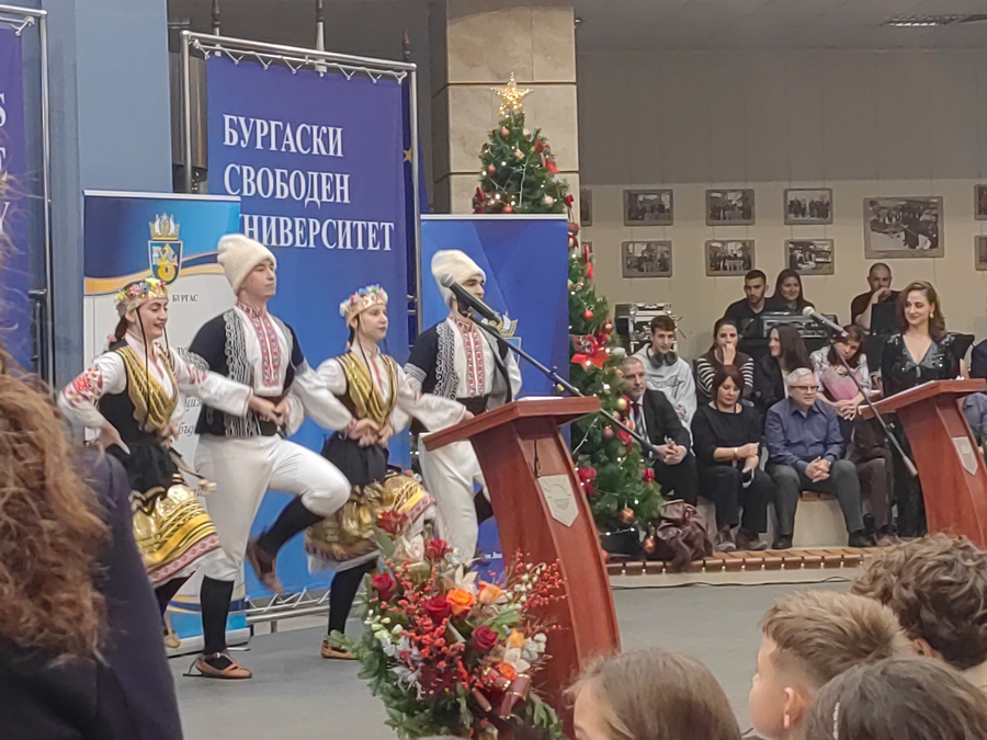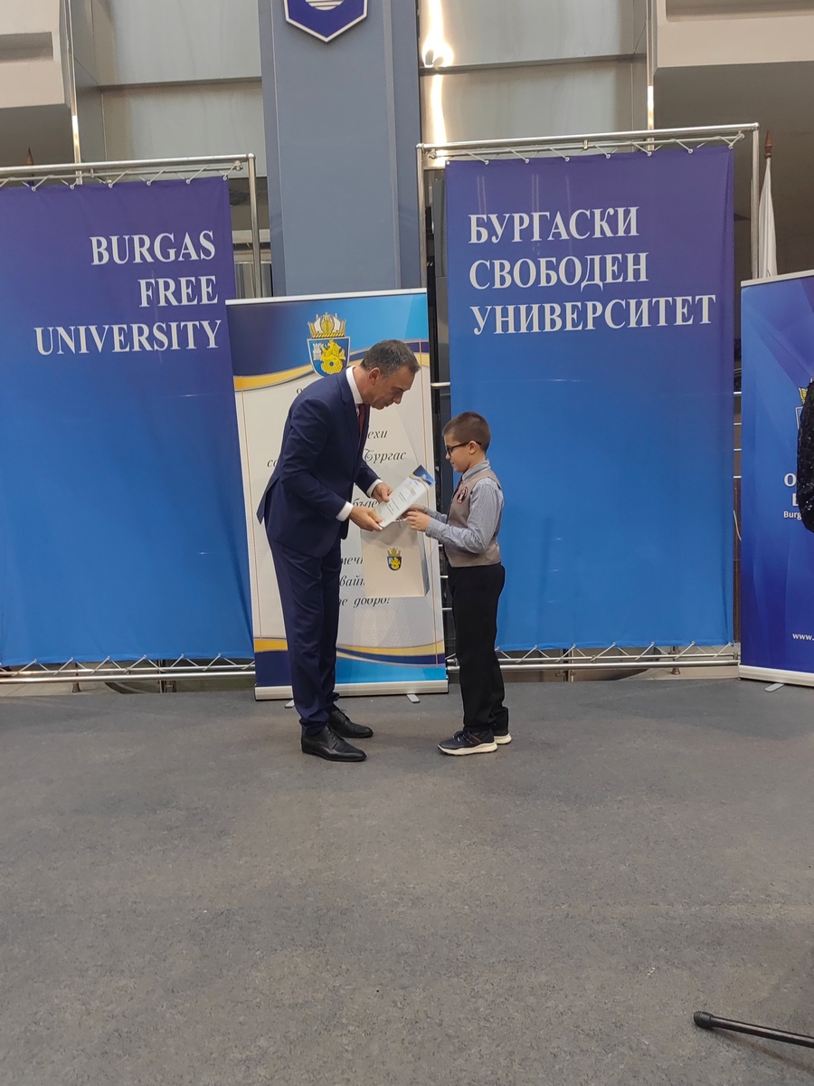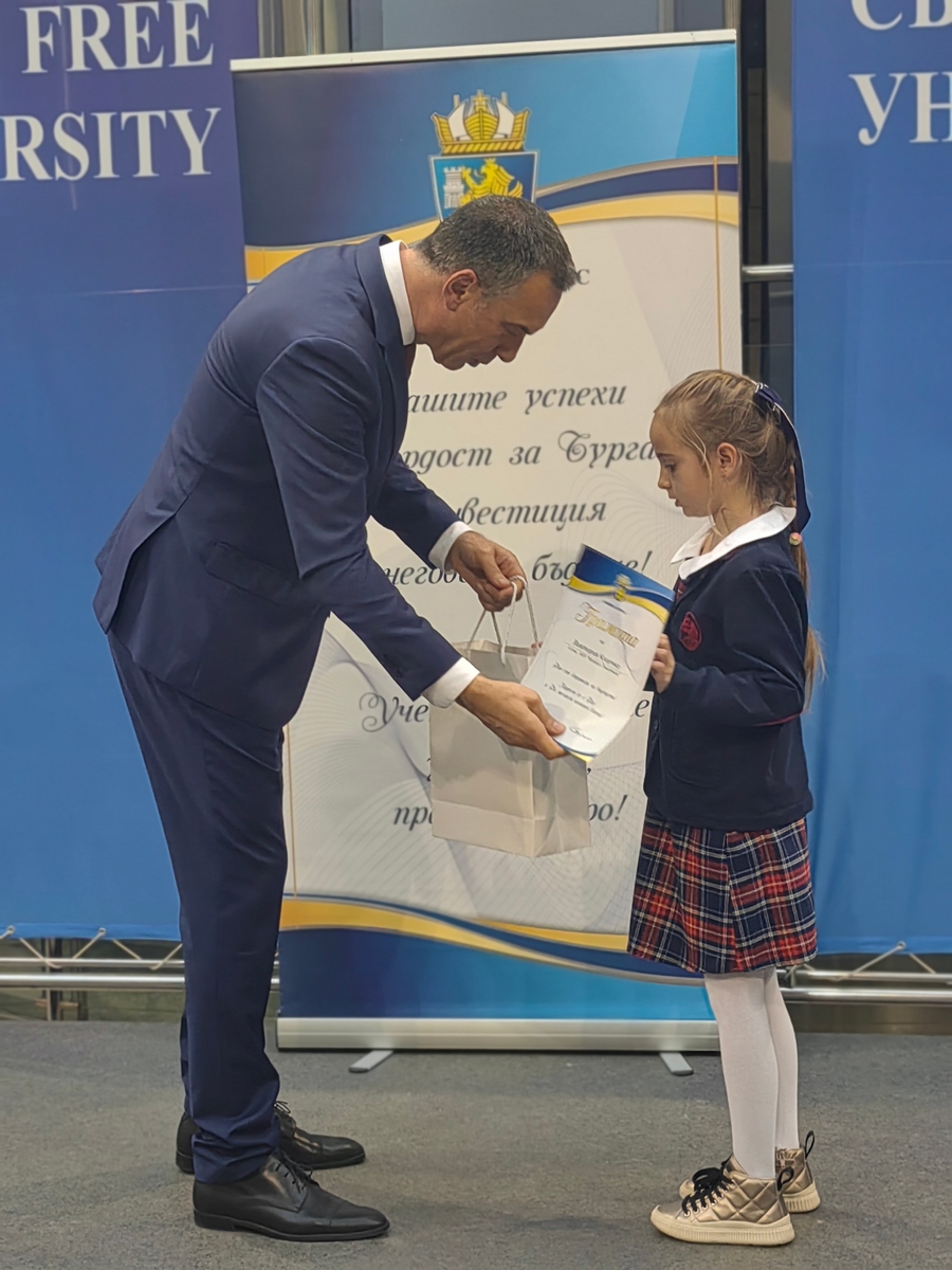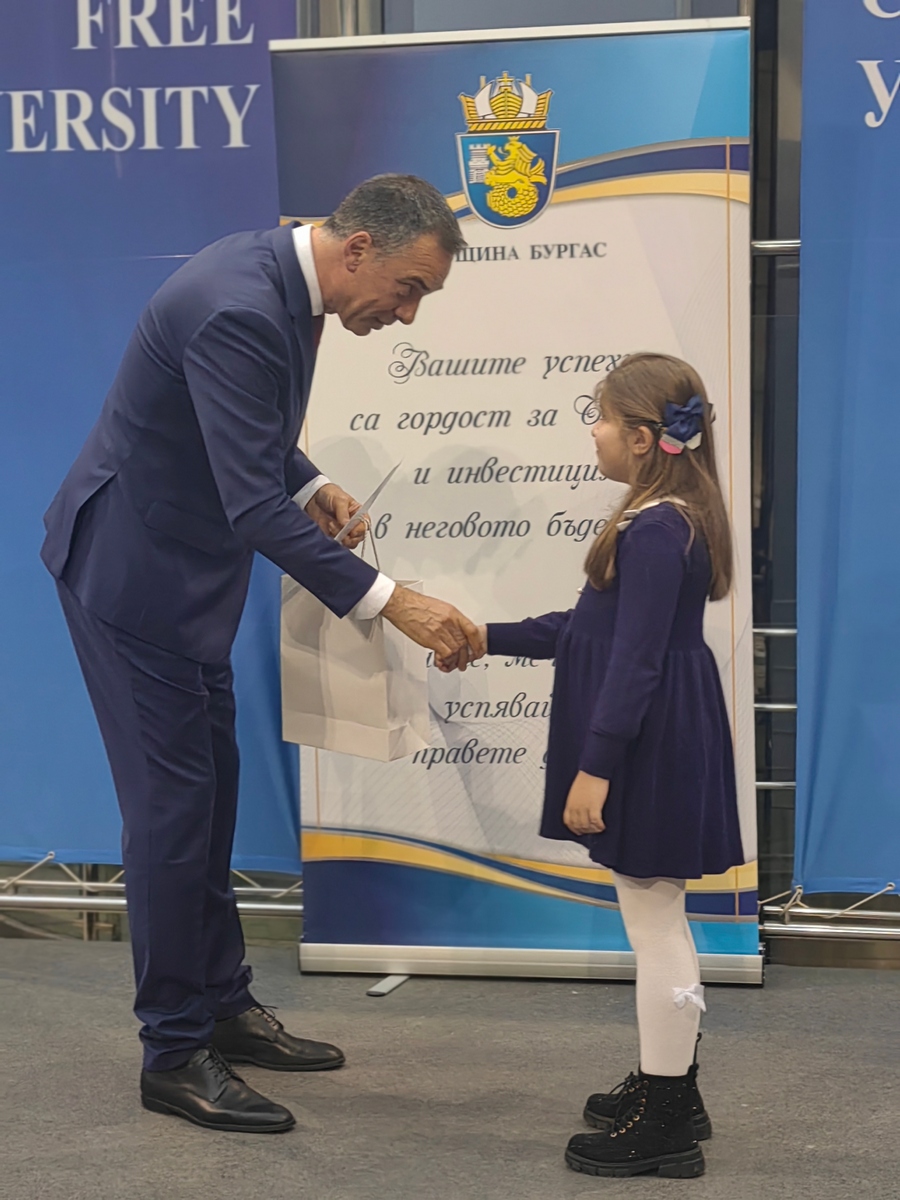 Атриумът на БСУ днес се превърна в море от ученици, студенти и деца с високи постижения в образованието, науката, изкуствата и спорта. Те получиха своите отличия в навечерието на Никулден пред погледите на родители, съученици, преподаватели и съграждани, лично от кмета на Бургас Димитър Николов.