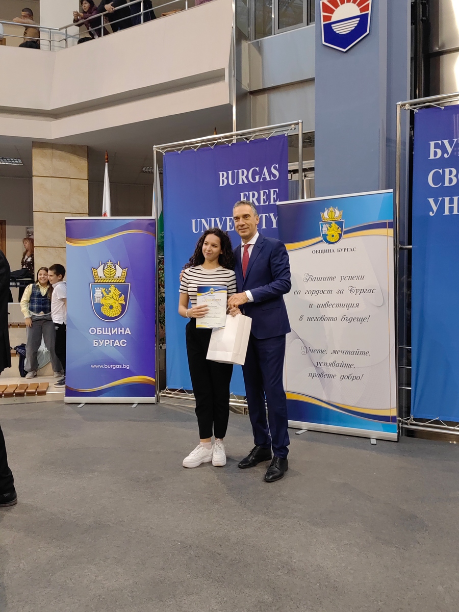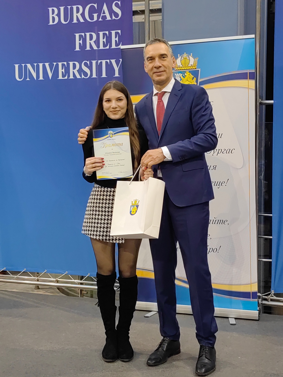 По традиция на нея бяха връчени и най-престижните отличия - „Ученик на годината“ и „Студент на годината“. Тази година престижното отличие „Студент на годината“ получиха трима студенти - Марина Петкова - Бургаски държавен университет „Проф. д-р Асен Златаров“, специалност „Медицина“, Богдан Костадинов - Бургаски свободен университет, специалност „Международни икономически отношения“, Гаудиа Агханену - Бургаски държавен университет „Проф. д-р Асен Златаров“, специалност „Медицина“.