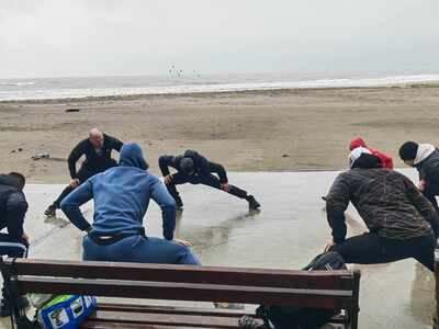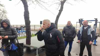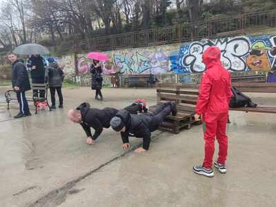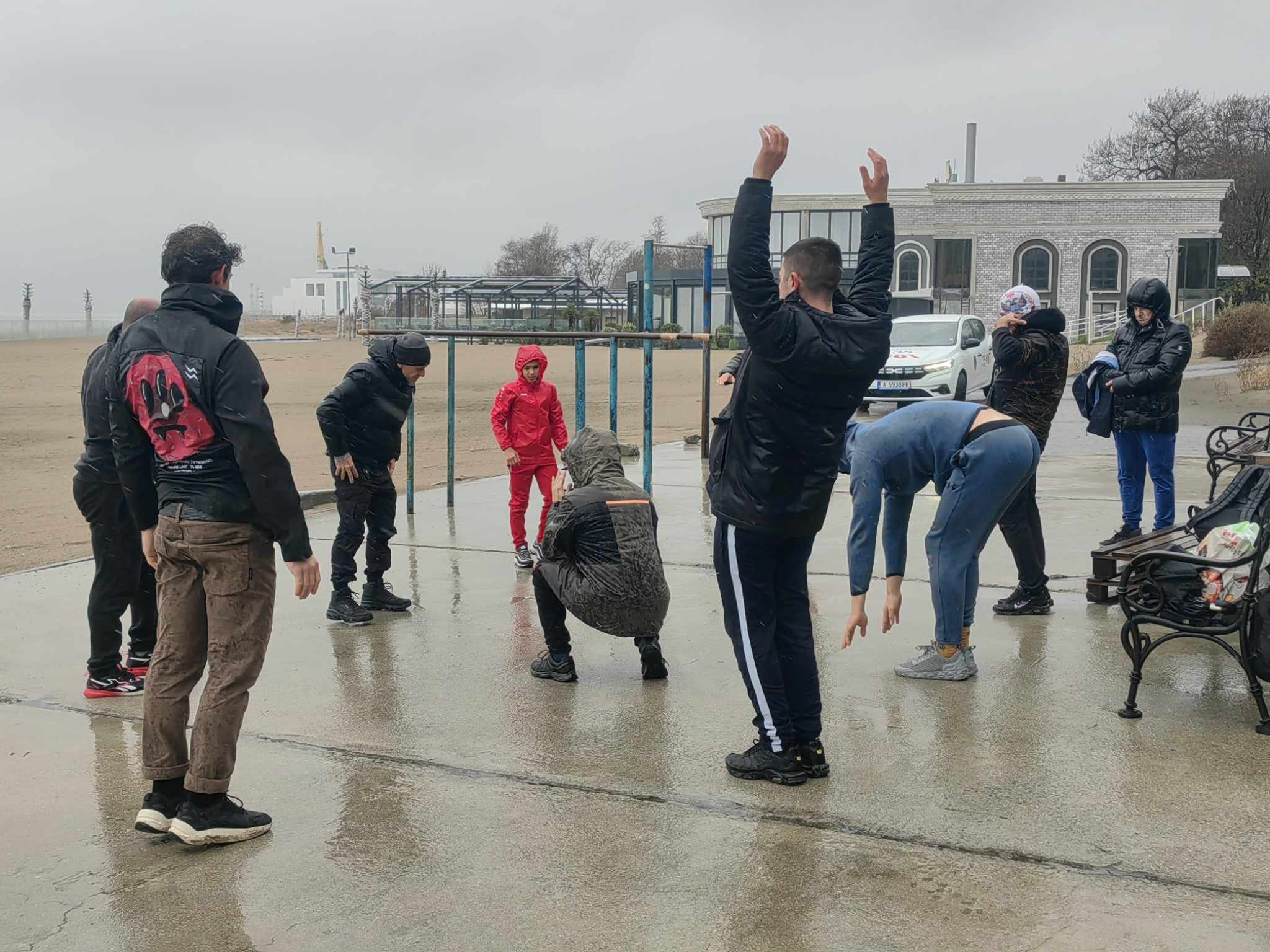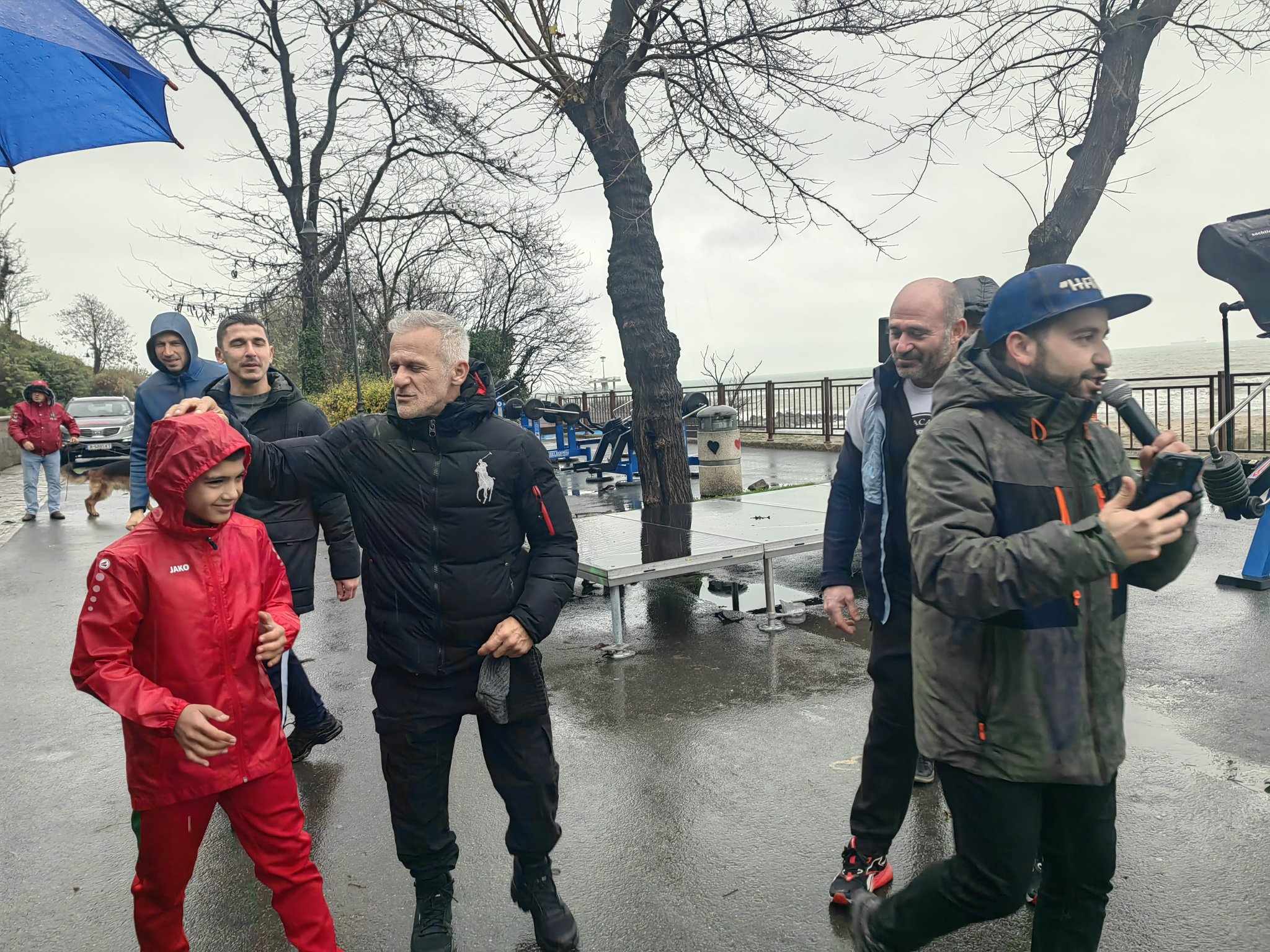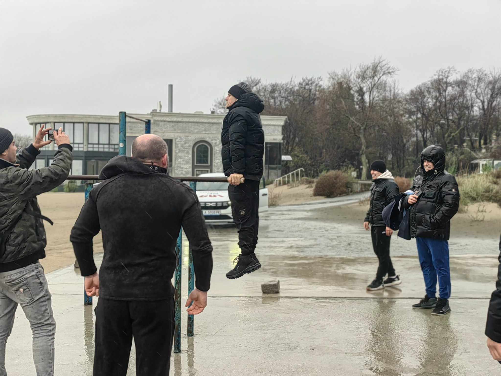 Истинско желание за тренировка с любим спортист демонстрира 12-годишният Гриша Колев. Момчето е вицешампион по акробатика, а дъждът не го спря да се включи в тренировката, която Йордан Йовчев проведе на открития фитнес до ресторант „Нептун“.