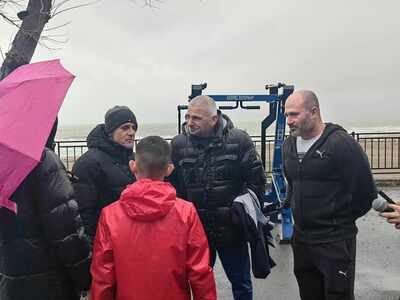 В 8:30 плувецът Цанко Цанков и любители на плуването в открити води се събраха на плажа в Бургас. Голямото вълнение не им позволи да преплуват предварително очертания маршрут, но пък и не им попречи да се гмурнат за малко в бурното море.