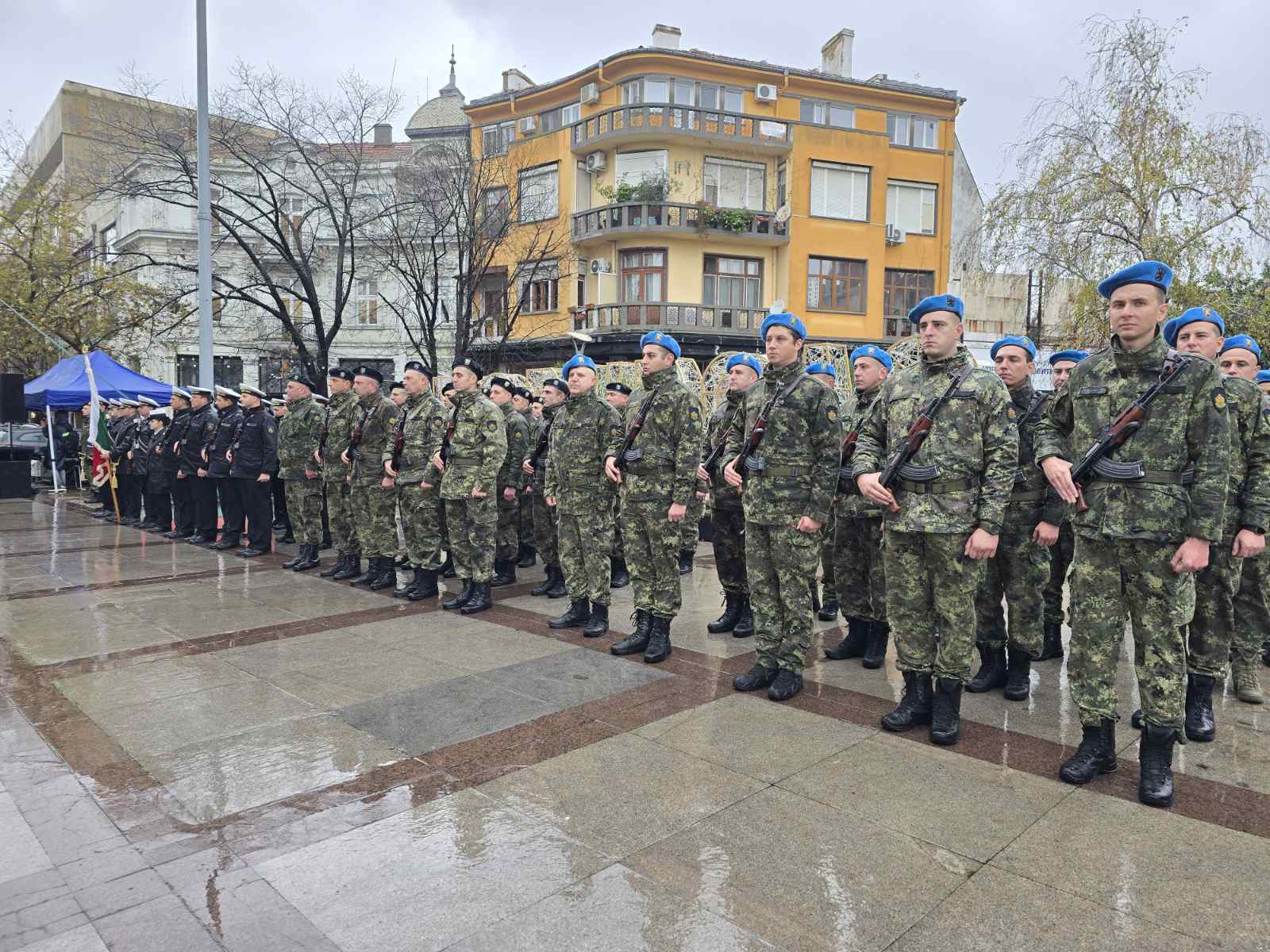 Строят на представителни блокове от състава на Флотилия бойни и спомагателни кораби, Командване за логистична поддръжка, формирования на Военновъздушните сили бе приет от началника на гарнизон Бургас и командир на Флотилия бойни и спомагателни кораби флотилен адмирал Радко Пенев.