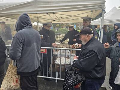 Оттам множеството се прехвърли в градинката до Часовника. Митрополит Арсений и представители на бургаското духовенство осветиха празнична трапеза и традиционния за Никулден рибен курбан.