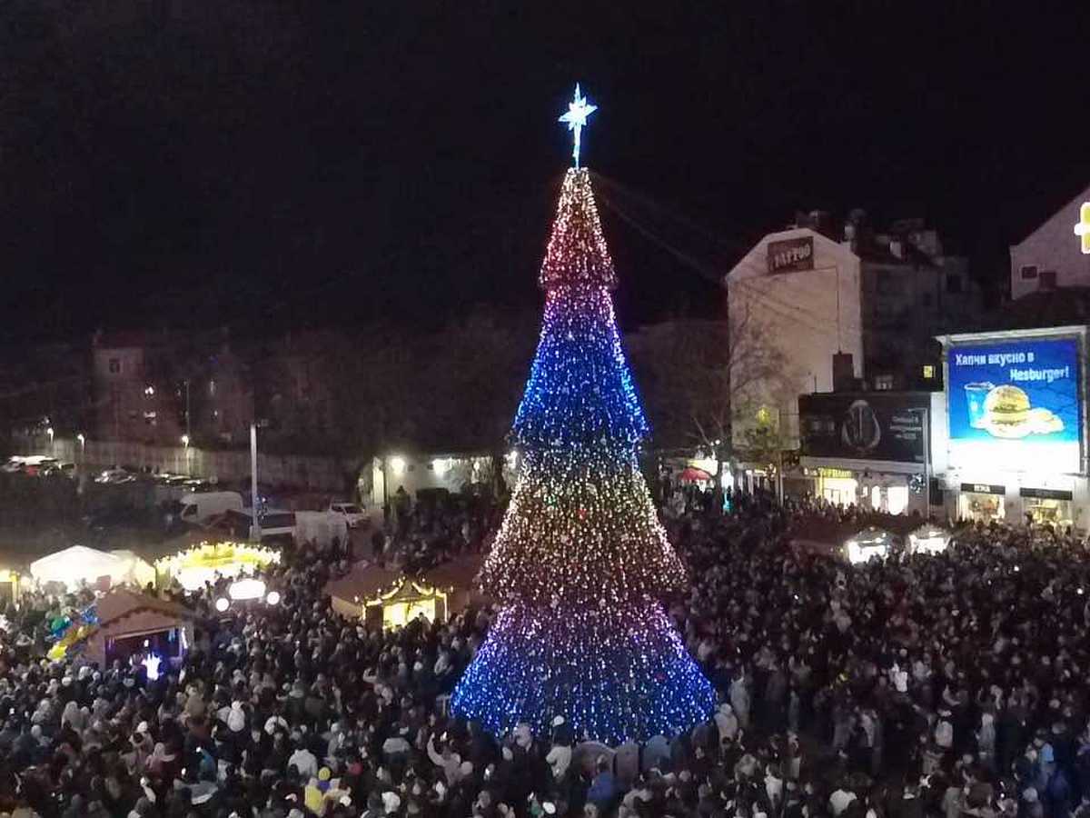 Хиляди са на пл. Тройката, Бургас грейна в коледни светлини (ВИДЕО)