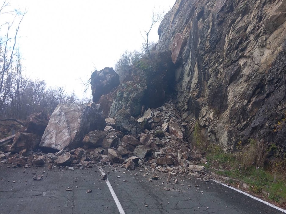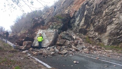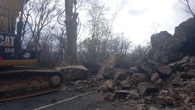 5 машини разчистват свлечената скална маса в района на Кърнаре