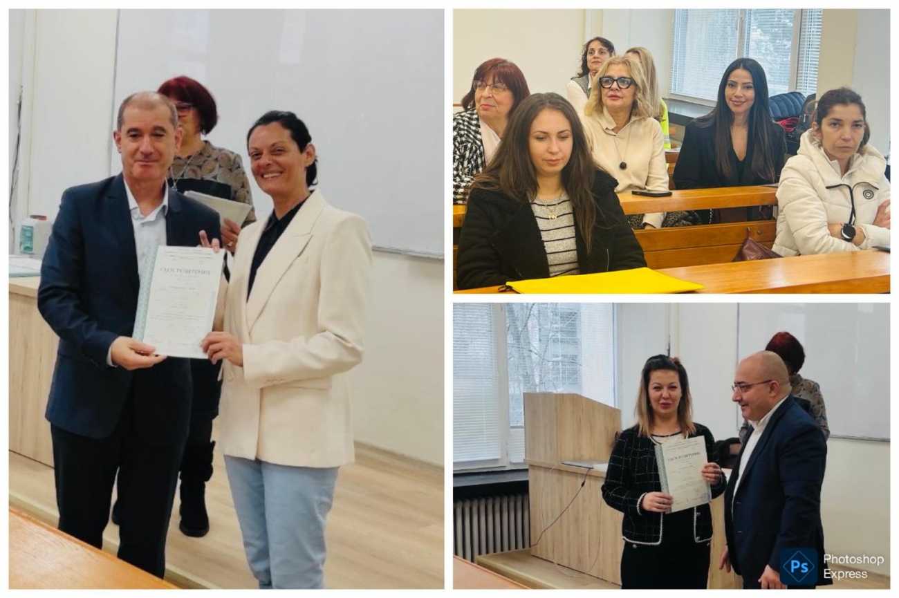 По-рано същия ден бяха връчени удостоверения на курсистите, преминали кратко обучение от 41 дни за част от професия „Парамедик“. То се реализира по договор между висшето училище и Община Поморие – изпълнител на проект по програма „Красива България“, в рамките на който бяха включени за обучение безработни лица.