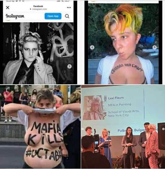 Но да оставим вече наближаващата 40 протестърка, за да обърнем поглед към определено младата, но вече изтъкана от клишета, Лекси Фльор... А, не, не е чужденка девойката, родно производство е, но това – по собствените ѝ думи, е нейният артистичен псевдоним. В един анонс тя е представена така – „Лекси Фльор е визуална артистка, която живее между България и Швейцария. Нейните работи са вдъхновени от абсурдността на балканската култура и отношенията между Изтока и Запада. Практиките ѝ се движат между културна и институционална критика и фарсов хумор. Лекси е художник, фотограф, режисьор, пърформанс артист.“