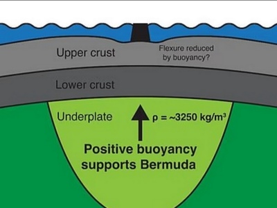 При Бермудите обаче липсват доказателства за подобна активност през последните десетки милиони години. Новооткритият слой, който е по-малко плътен от околните скали, вероятно едновременно отклонява сеизмичните вълни и поддържа островите издигнати.