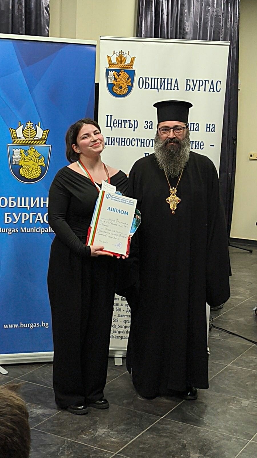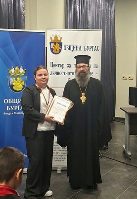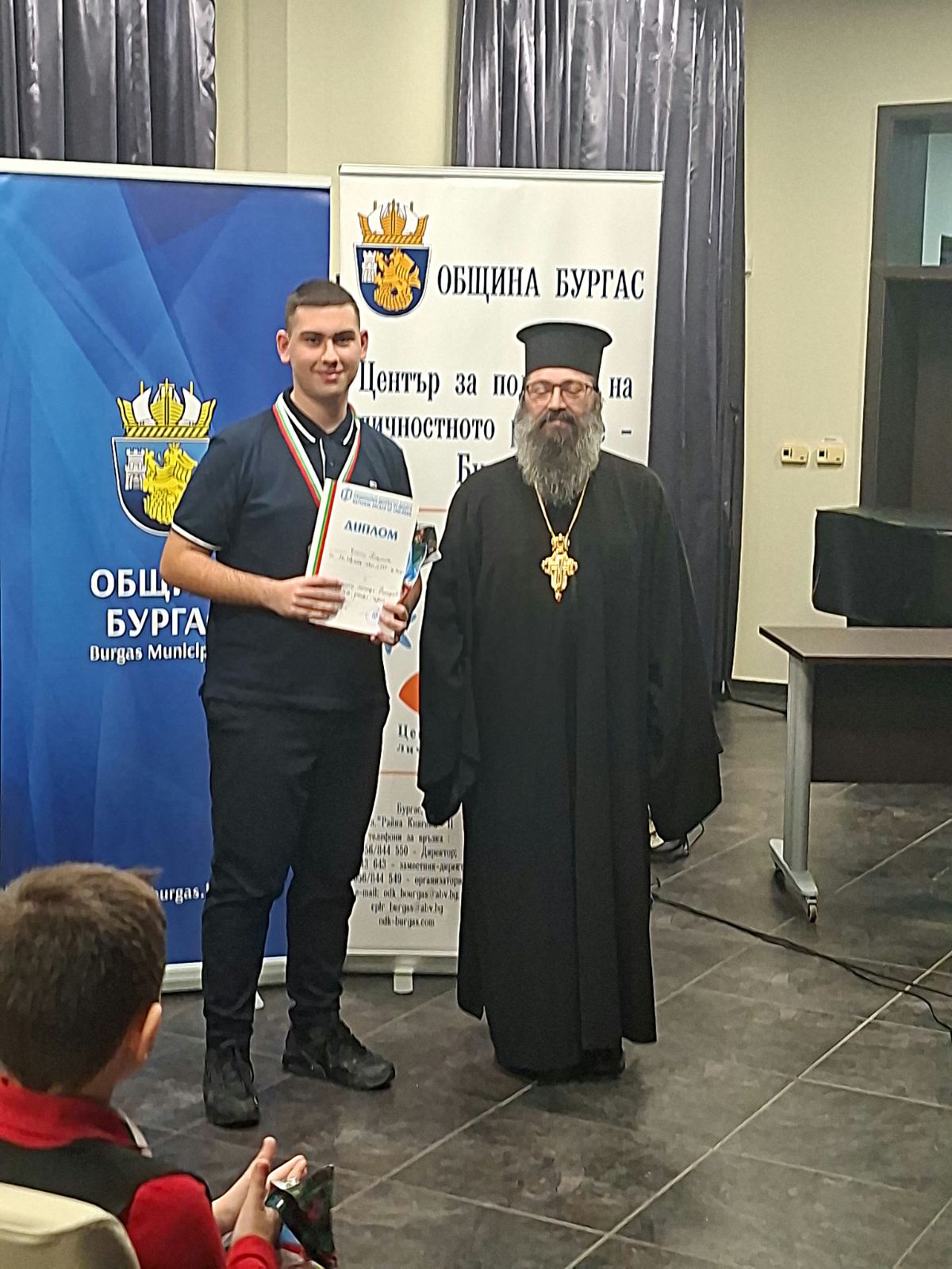 На тържествена церемония в зала "Петя Дубарова", в Културен център "Морско Казино" – Бургас, младите хора от Поморие получиха своите отличия от отец Севастиян, представител на Сливенска епархия.