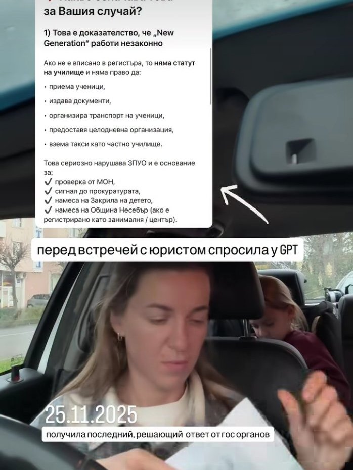 „Всичко е напълно официално, работим с юристи. Всичко ни е законно. Децата ще имат дипломи“, гарантира директорката. Тя обясни, че вече са минали всички проверки от институциите и те доказвали, че образователната институция била изрядна и законна.